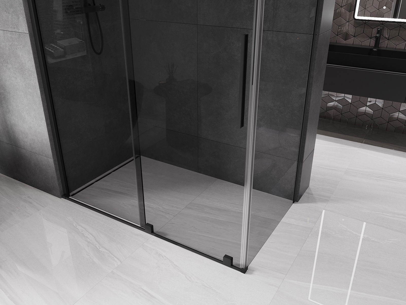 Mexen Velar плъзгаща се душ кабина 160 x 70 см, графит, черна - 871-160-070-41-70