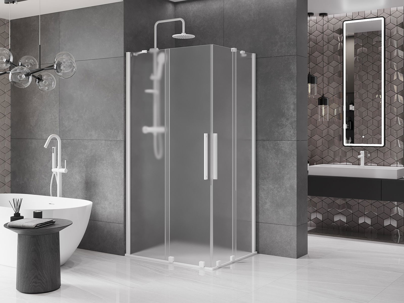 Mexen Velar Duo плъзгаща душ кабина 90 x 80 см, матирано стъкло, бяло - 871-090-080-32-20