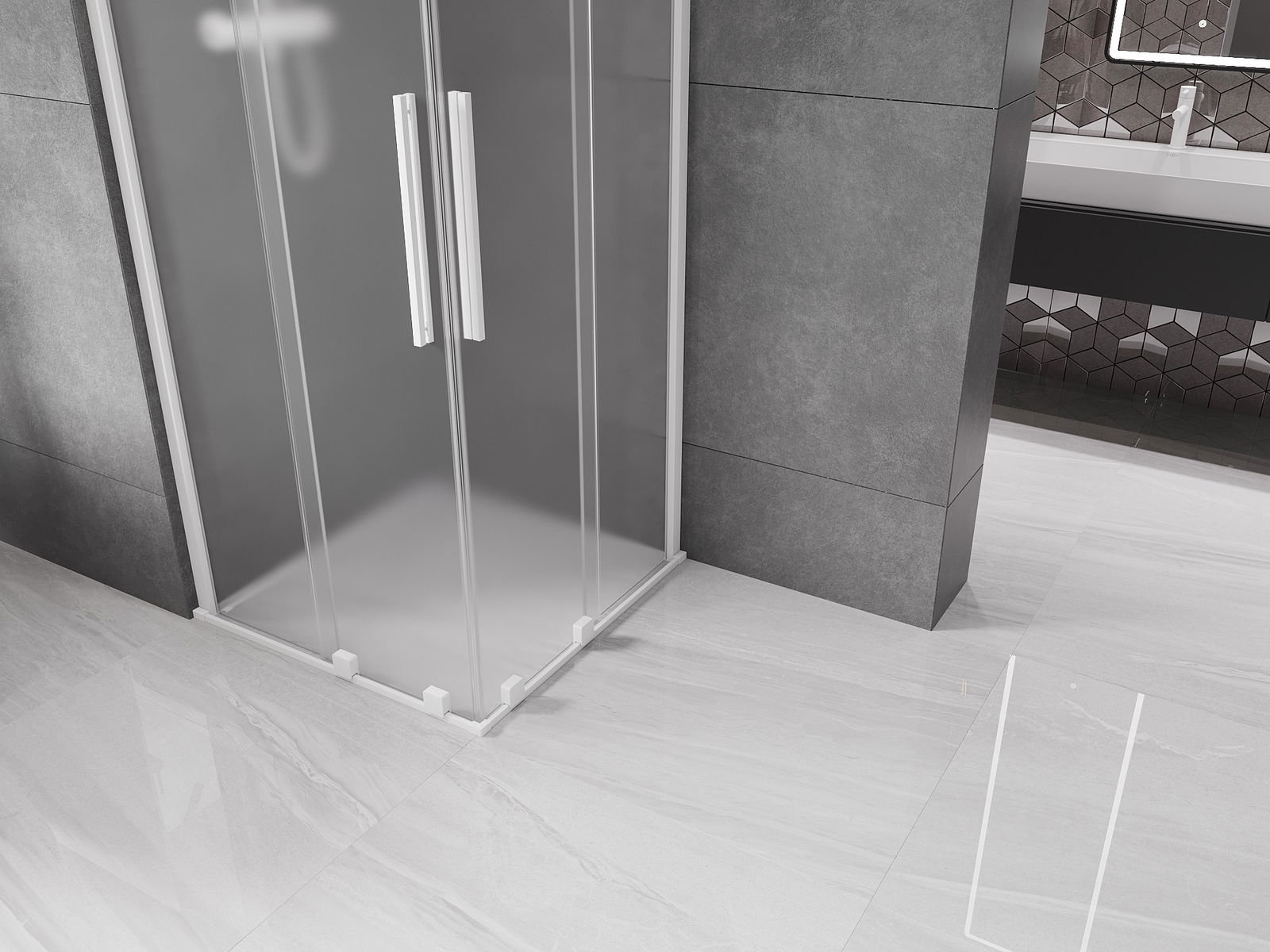 Mexen Velar Duo плъзгаема душ кабина 90 x 90 см, матово стъкло, бяла - 871-090-090-32-20