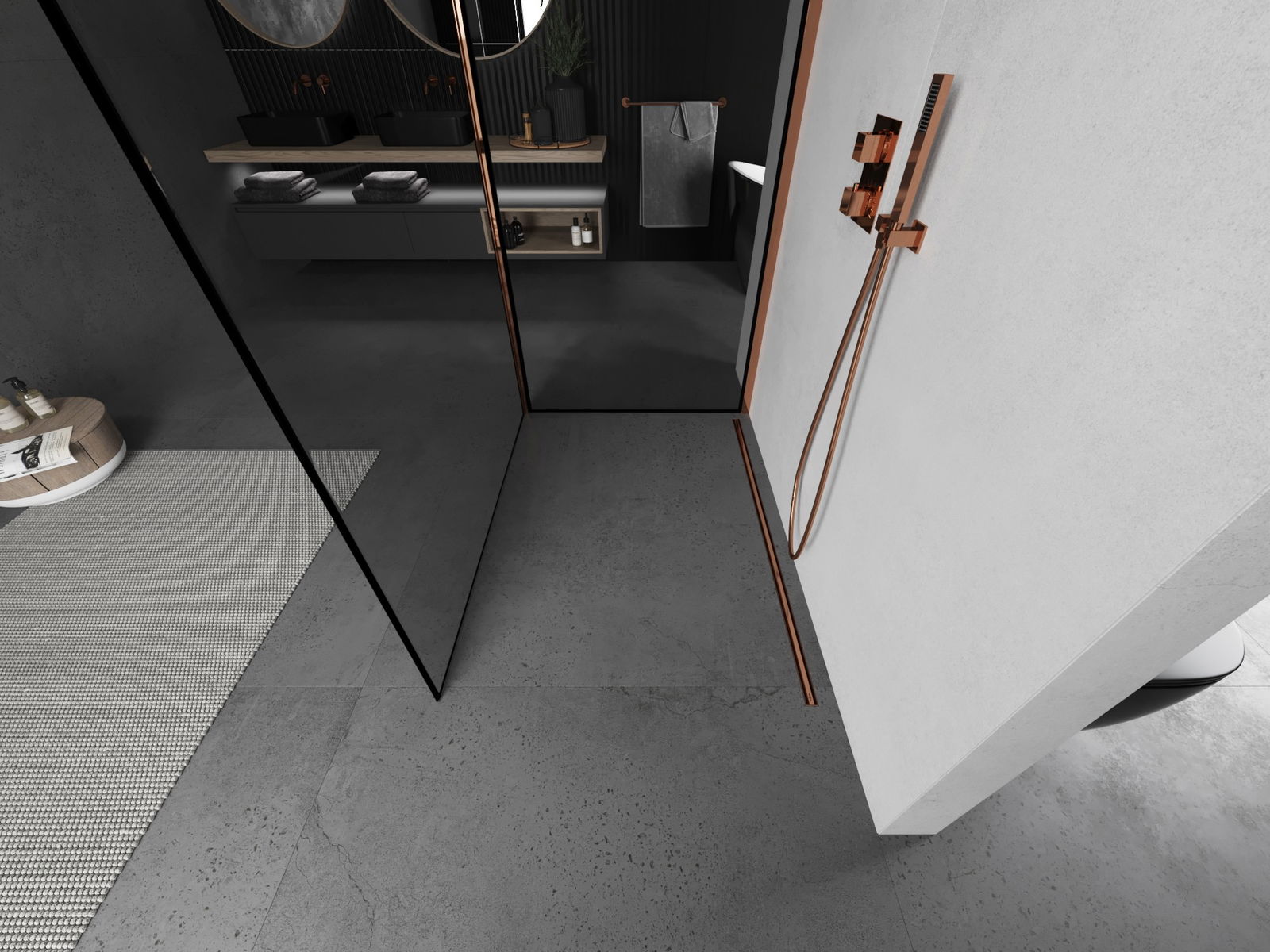 Mexen Kioto душ стена Walk-in 120 x 80 см, черна рамка, розово злато - 800-120-212-60-70-080