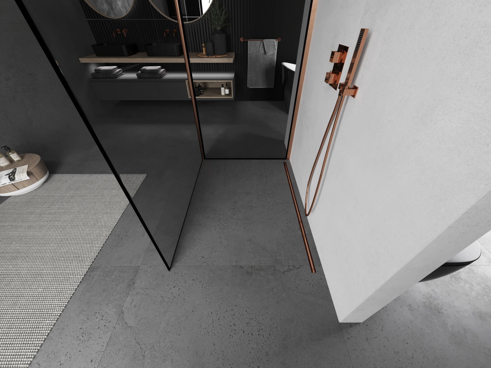 Mexen Kioto преградна стена за душ 90 x 70 см, черна рамка, матирано медно - 800-090-212-65-70-070