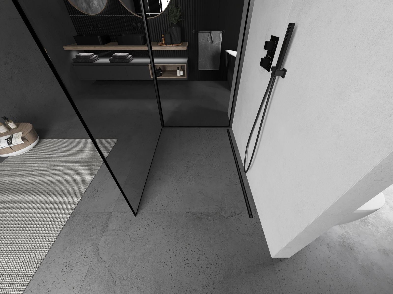 Mexen Kioto душ кабина тип преграда Walk-in 100 x 70 см, черна рамка, матирано сиво - 800-100-212-66-70-070