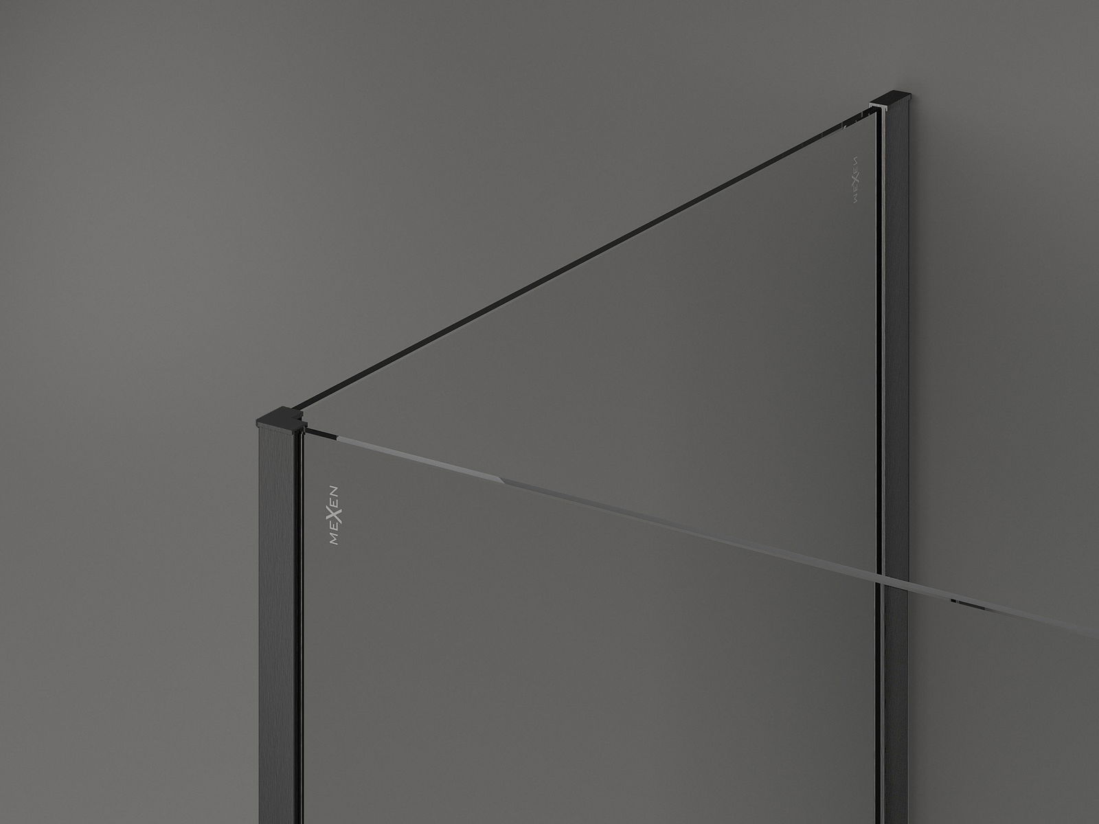 Mexen Kioto Стъклена преграда за душ тип Walk-in 140 x 70 см, черна рамка, четкано
