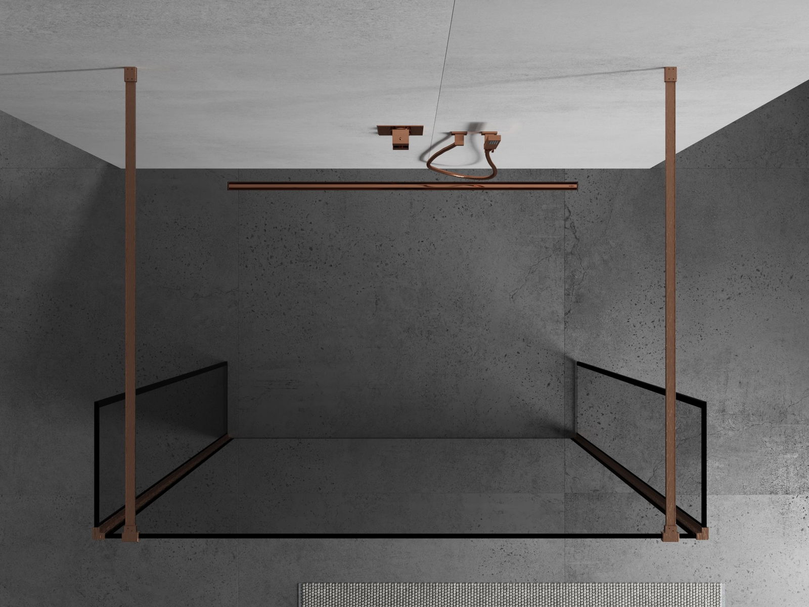 Mexen Kioto Свободностояща душ стена 110 x 30 x 30 см, черна рамка, четкана мед - 800-110-030-222-65-70-030