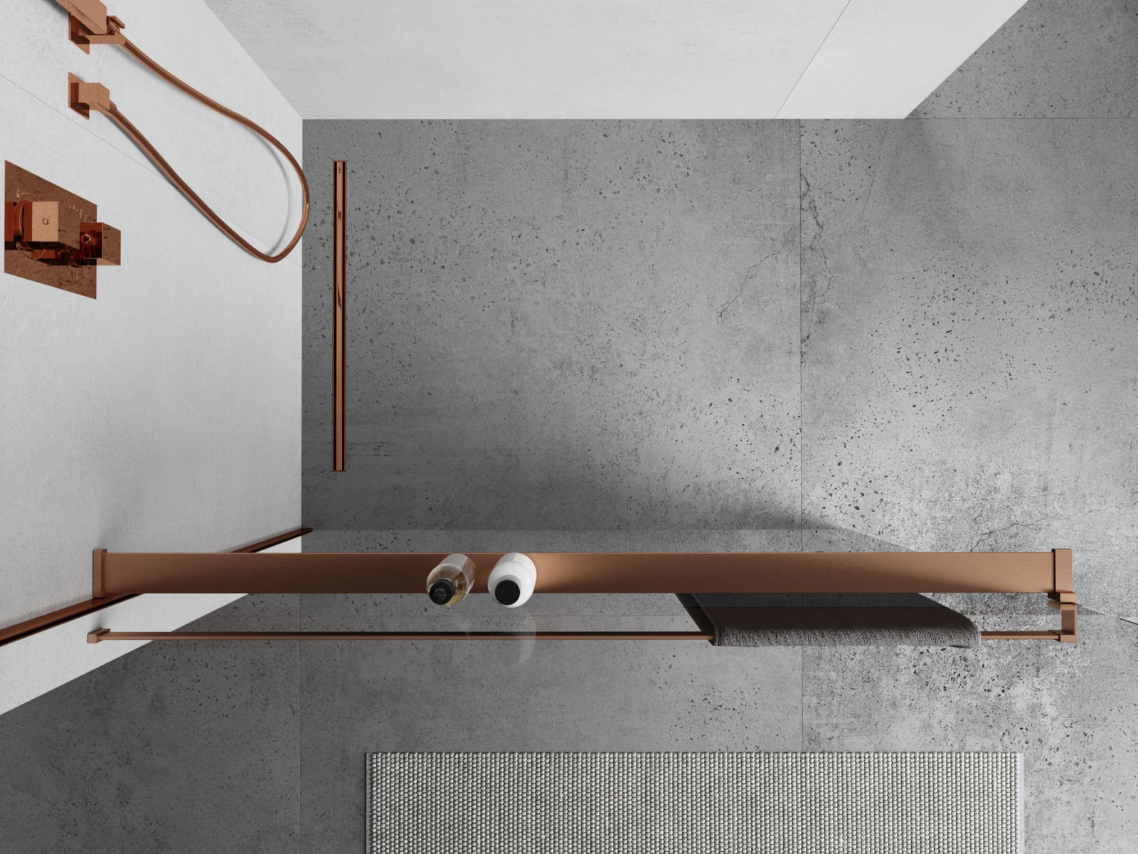 Mexen рафт за душова стена с релинг за кърпи, четкана мед - 800-02-65