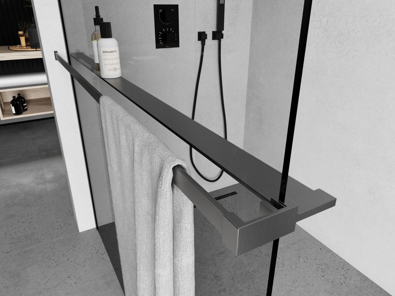 Mexen рафт за душ стена с релса за кърпи, гън сиво четкано - 800-02-66