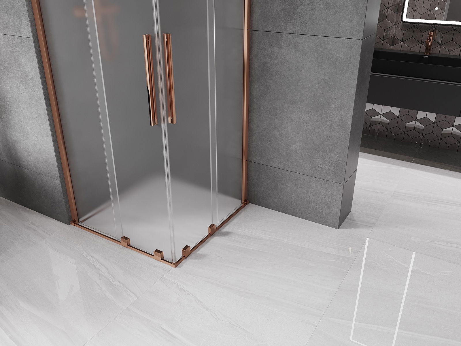 Mexen Velar Duo плъзгаща душ кабина 80 x 80 см, матирано стъкло, розово злато - 871-080-080-32-60