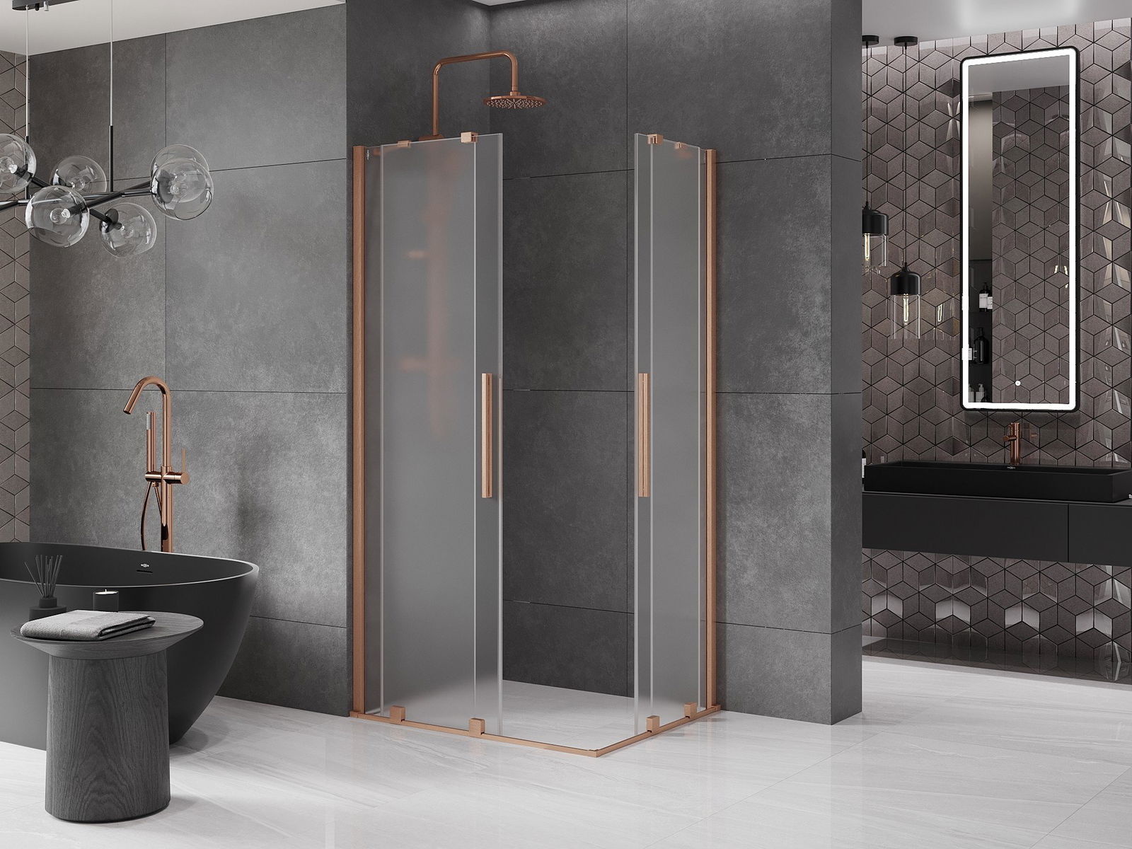 Mexen Velar Duo плъзгаща се душ кабина 90 x 80 см, мъгла, полирана мед - 871-090-080-32-65