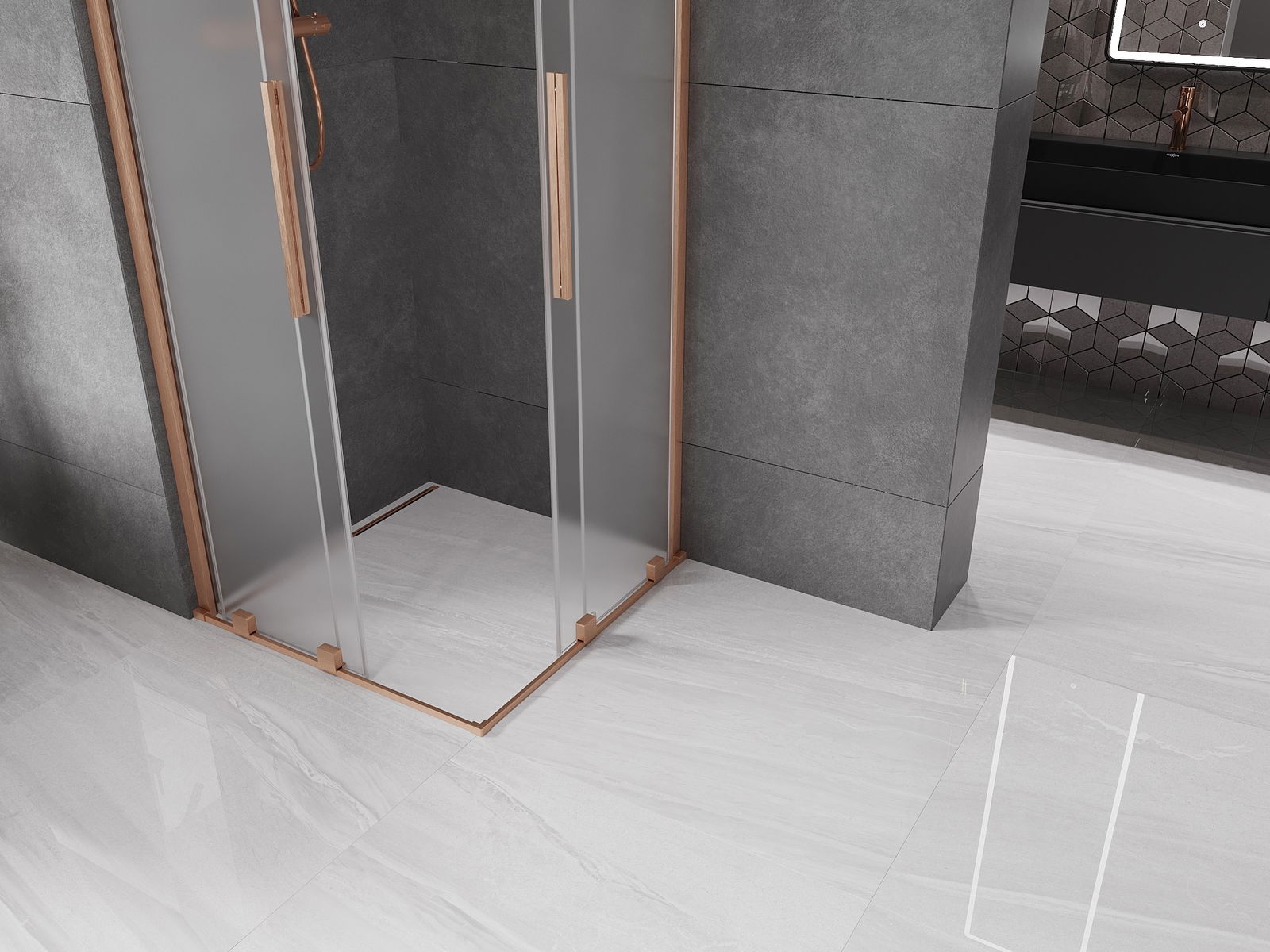 Mexen Velar Duo плъзгаща се душ кабина 90 x 90 см, матова, четкана мед - 871-090-090-32-65