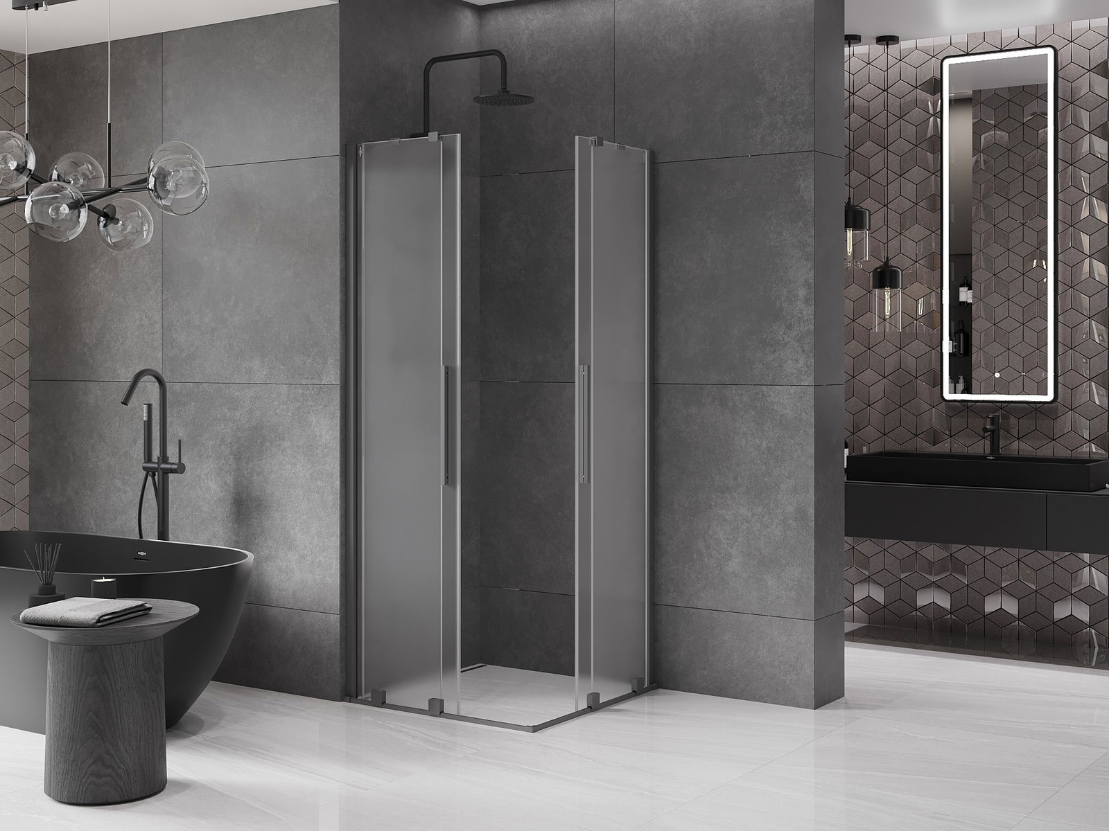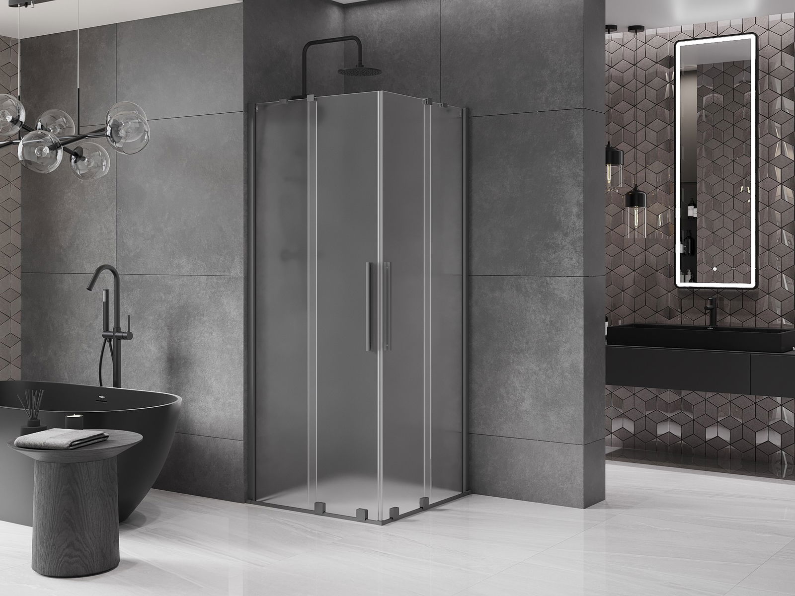 Mexen Velar Duo плъзгаща се душ кабина 80 x 80 см, матирано, gun metal - 871-080-080-32-95