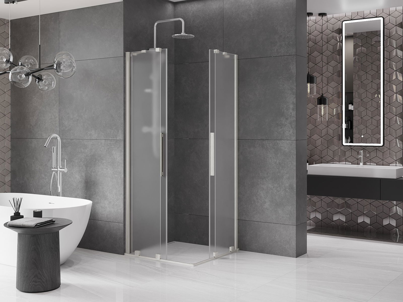 Mexen Velar Duo плъзгаща се душ кабина 80 x 80 см, мраз, четкан никел - 871-080-080-32-97