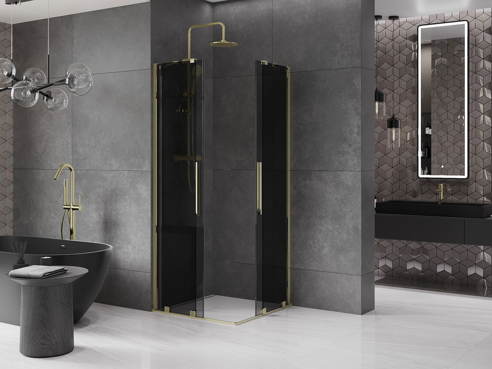 Mexen Velar Duo плъзгаща се душ кабина 90 x 90 см, графит, златна - 871-090-090-42-50