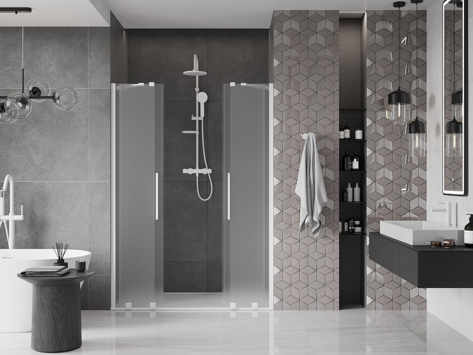 Mexen Velar Дву врати за душ плъзгащи се 140 см, матирани, бели - 871-140-000-32-20