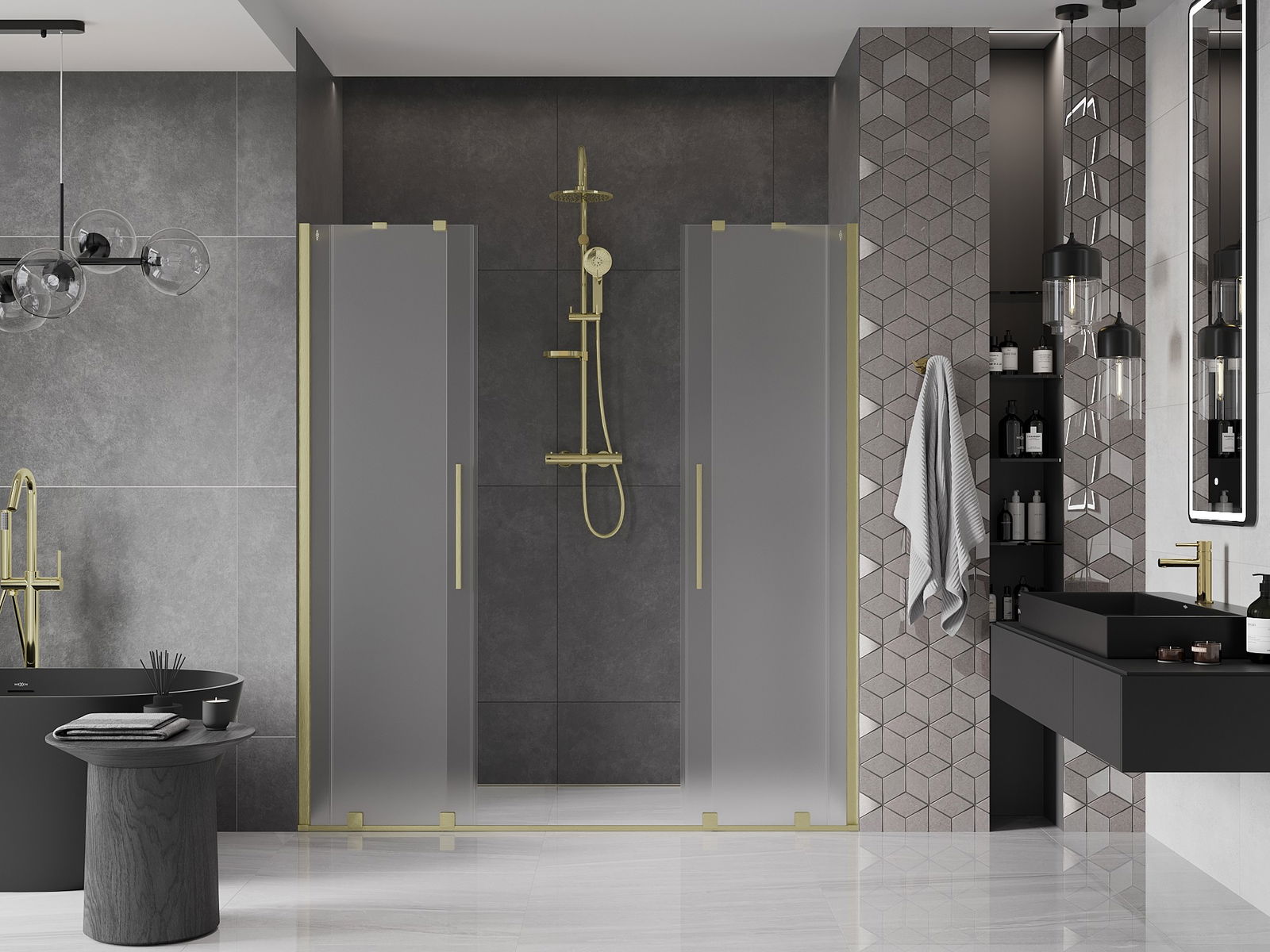 Mexen Velar Duo плъзгащи се душ врати 180 см, матирано стъкло, четкано злато - 871-180-000-32-55