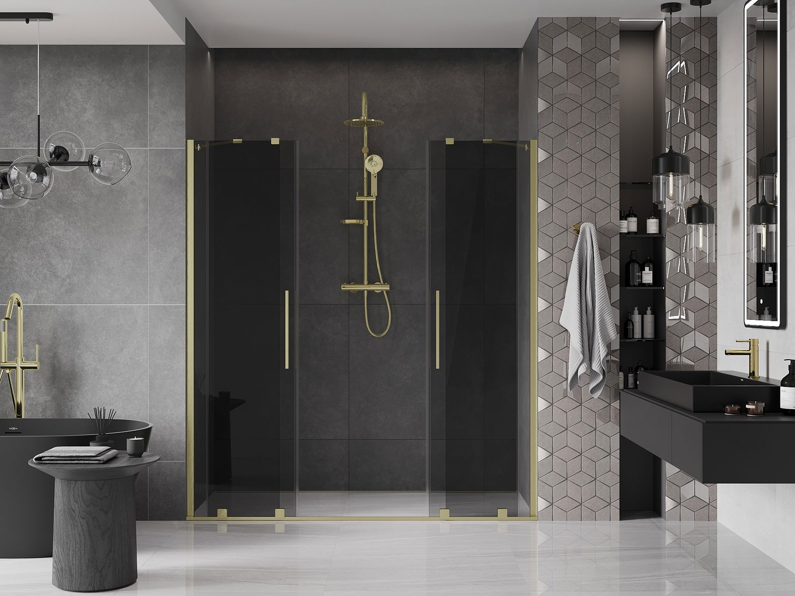 Mexen Velar Duo плъзгащи се душ врати 200 cm, графит, злато четкано - 871-200-000-42-55