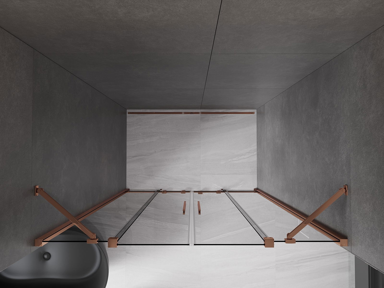 Mexen Velar Duo плъзгащи се душ врати 150 см, графит, розово злато - 871-150-000-42-60