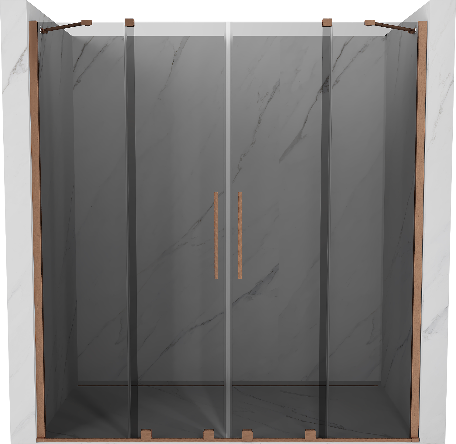 Mexen Velar Duo плъзгаща се душ кабина 180 см, графит, четкована мед - 871-180-000-42-65