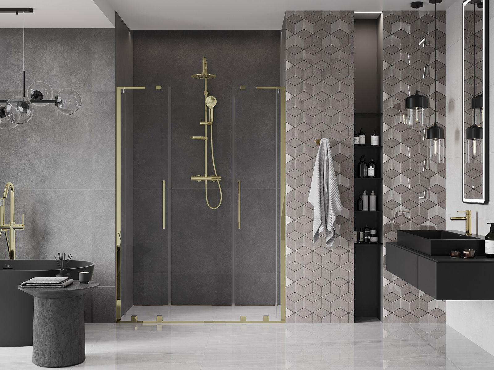 Mexen Velar L Duo плъзгащи се душ врати 150 см, прозрачни, златни - 871-150-003-02-50