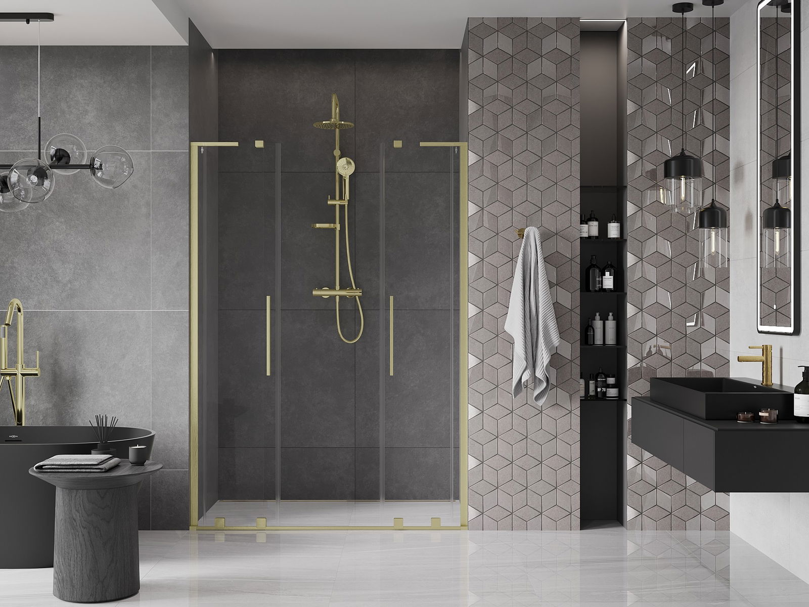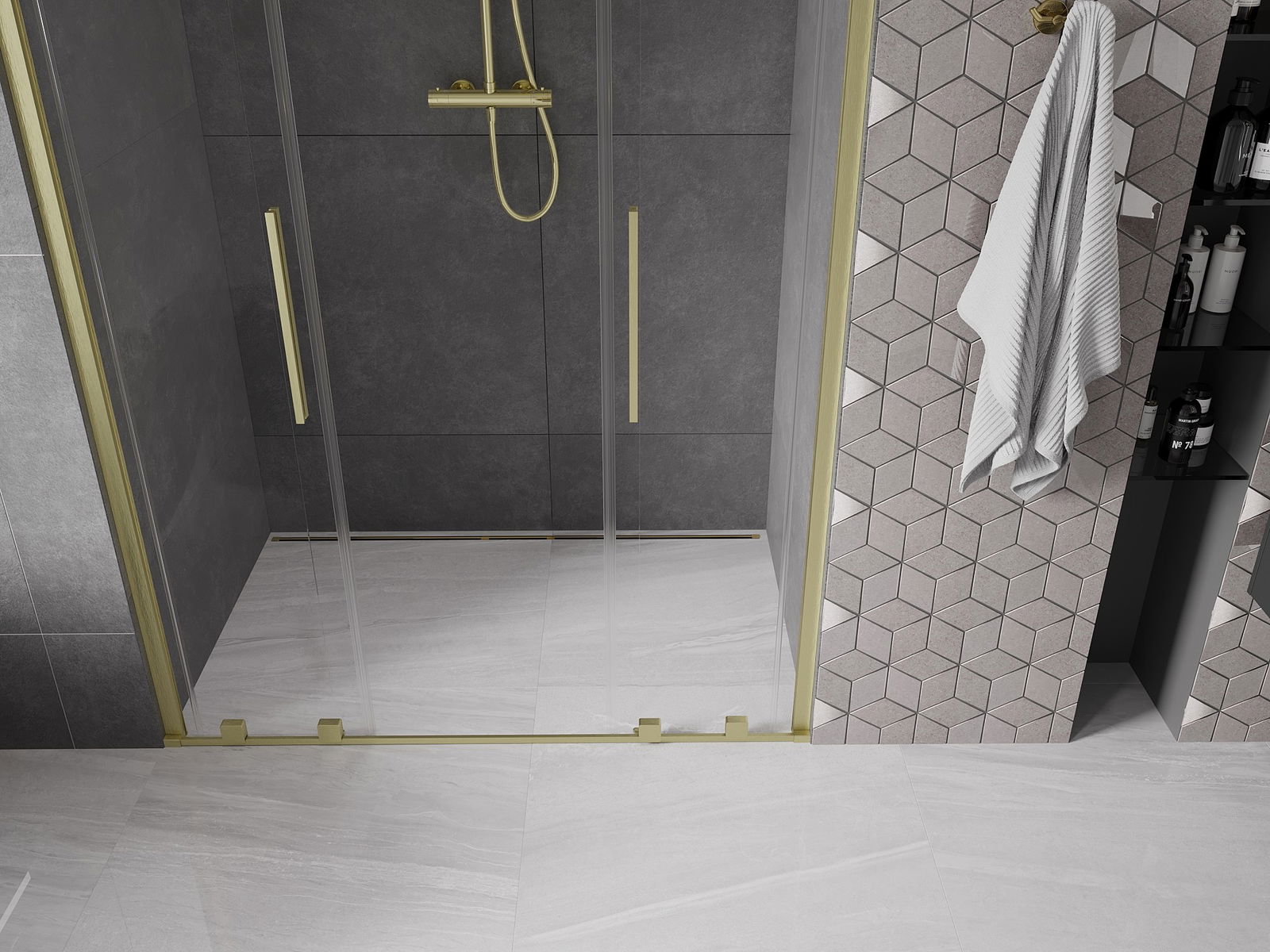 Mexen Velar L Duo плъзгащи се душ врати 160 см, прозрачни, златни матови - 871-160-003-02-55