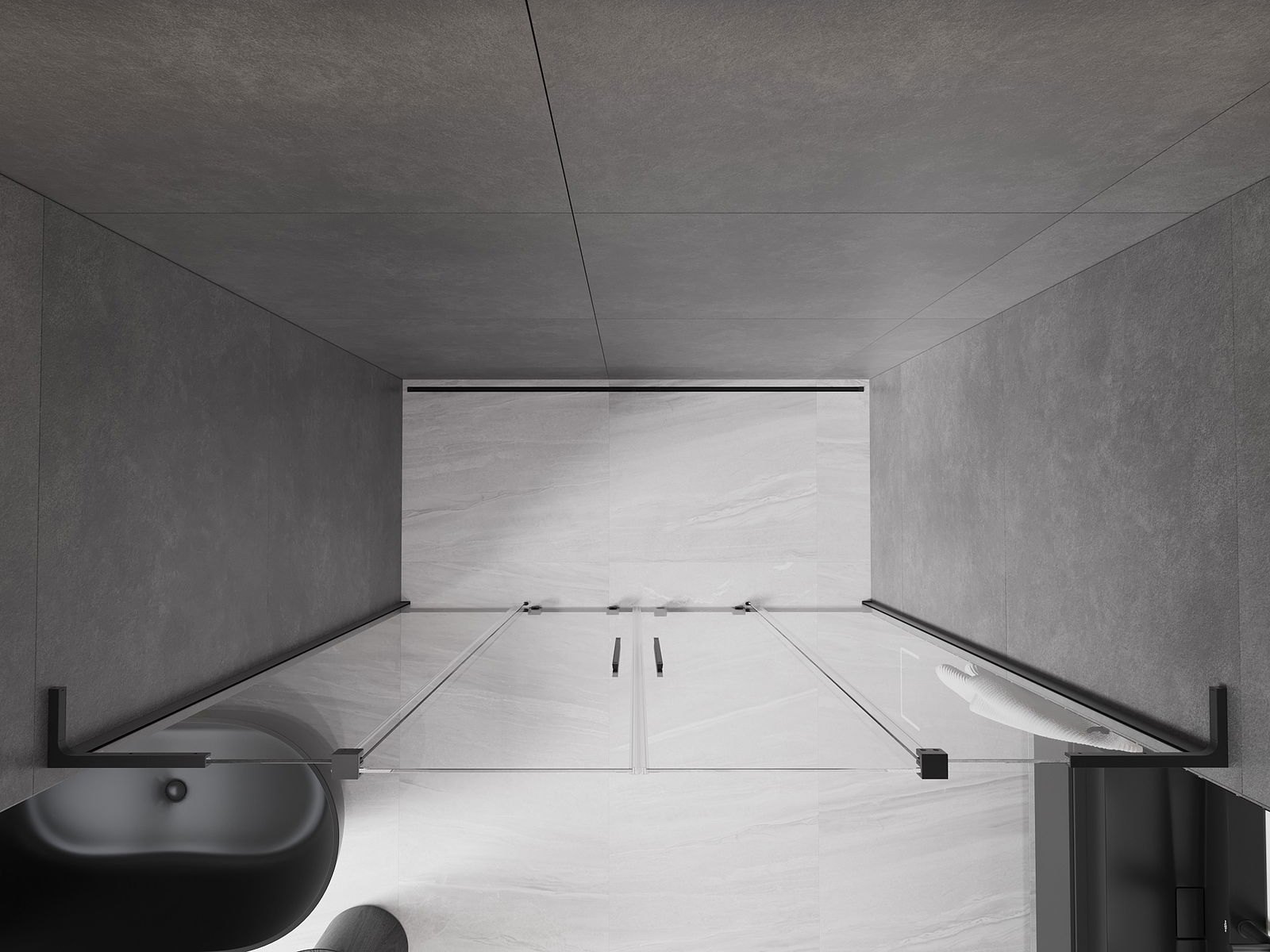 Mexen Velar L Duo плъзгаща се душ врата 200 см, прозрачна, черна - 871-200-003-02-70