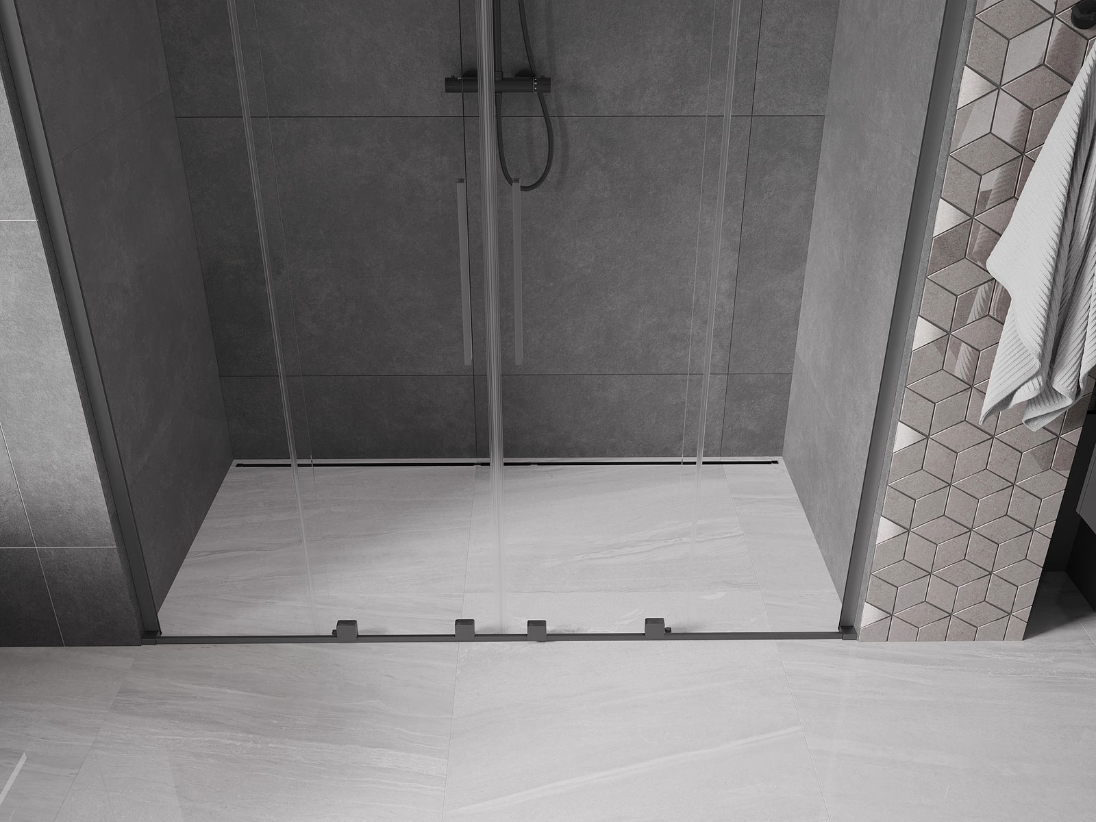 Mexen Velar L Duo плъзгащи се душ врати 170 см, прозрачни, gun metal - 871-170-003-02-95