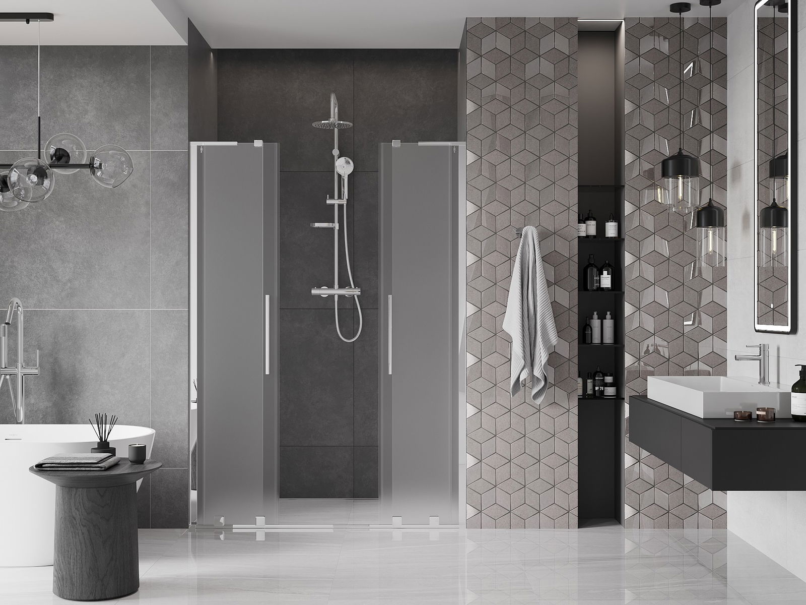 Mexen Velar L Duo сгъваеми душ врати 160 см, матиран, хром - 871-160-003-32-01