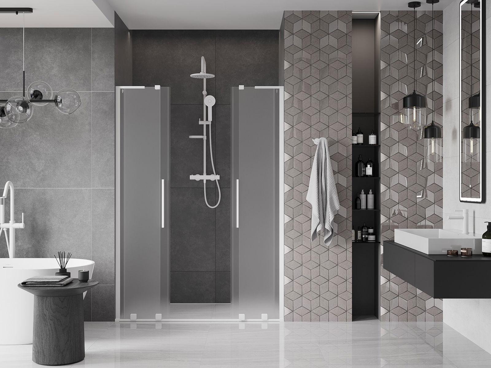 Mexen Velar L Duo плъзгащи се душ врати 140 cm, матирано, бяло - 871-140-003-32-20
