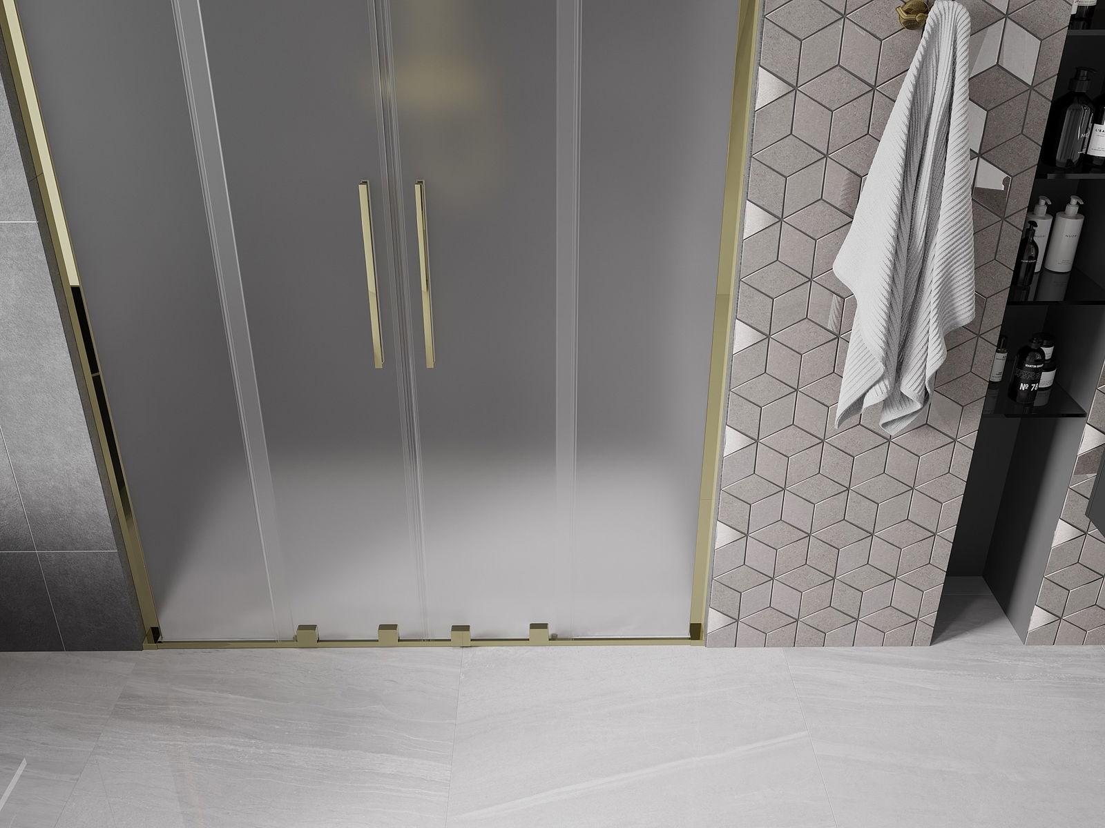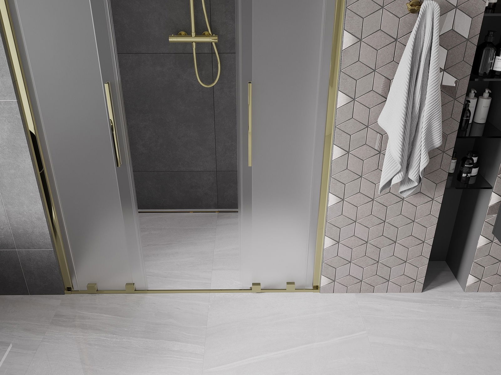 Mexen Velar L Duo плъзгащи се душ врати, 150 см, матови, златни - 871-150-003-32-50