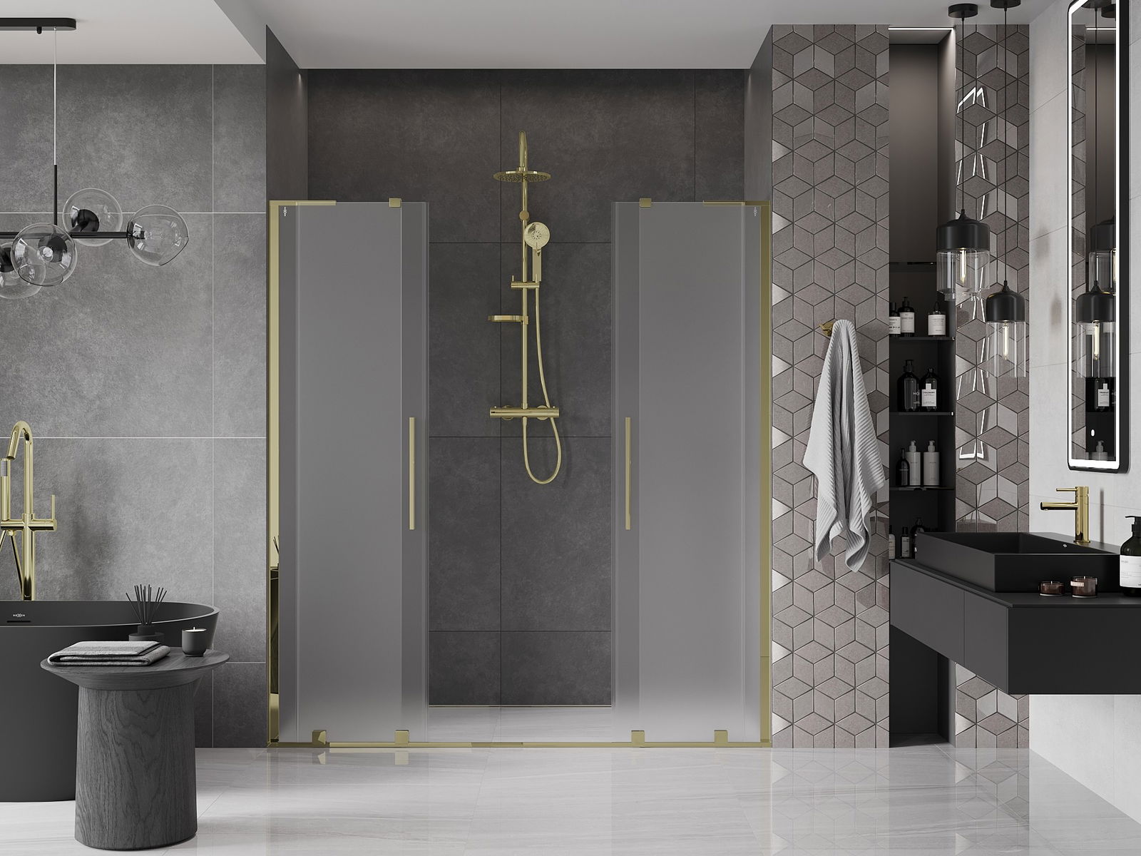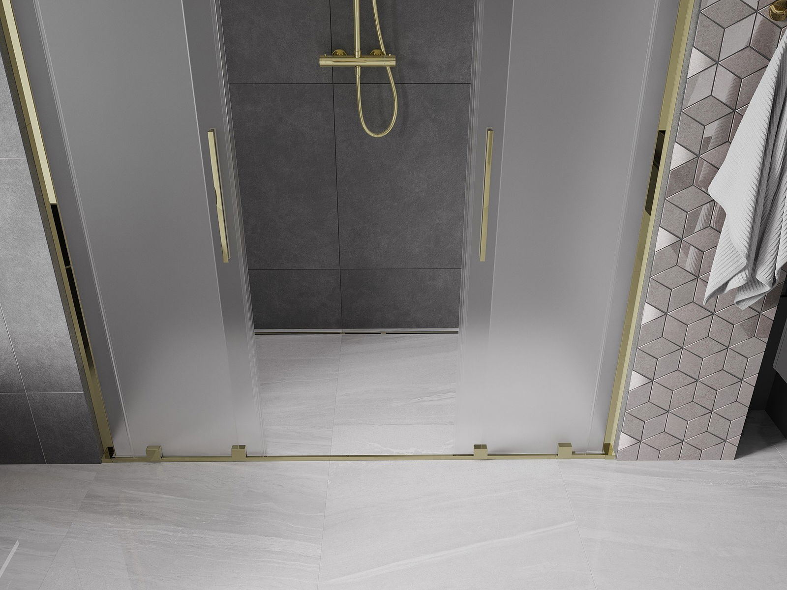 Mexen Velar L Duo плъзгаща се душ врата 200 см, матирано, златно - 871-200-003-32-50