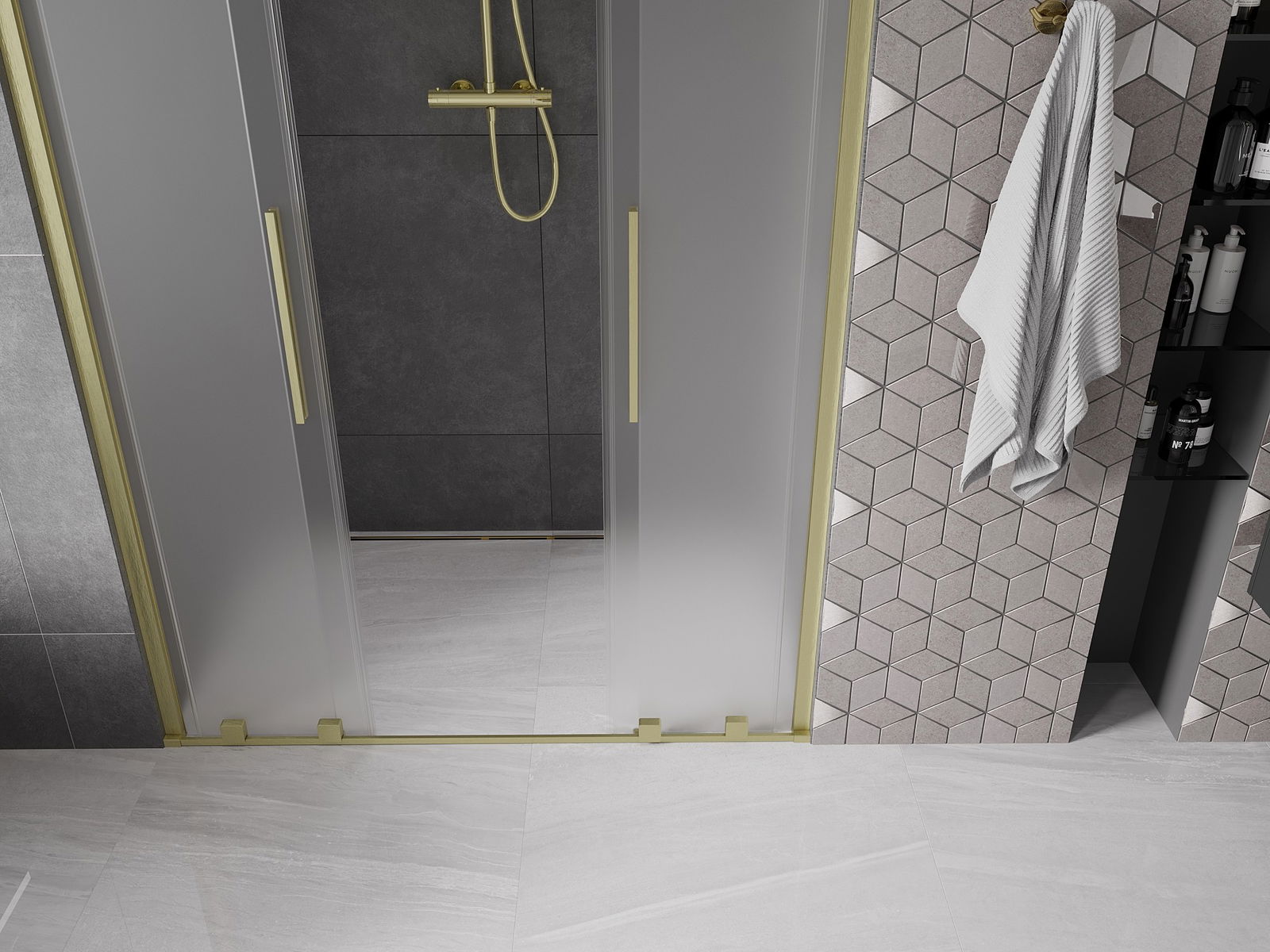 Mexen Velar L Duo плъзгащи врати за душ 150 см, матирано, златисто четкано - 871-150-003-32-55