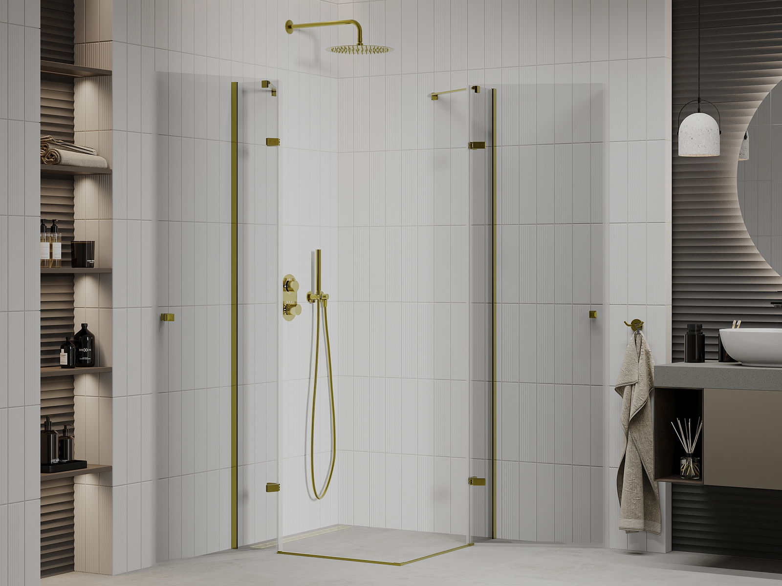 Mexen Roma Duo душ кабина с отваряща се врата 100 x 100 см, прозрачна, златна - 854-100-100-50-00-02