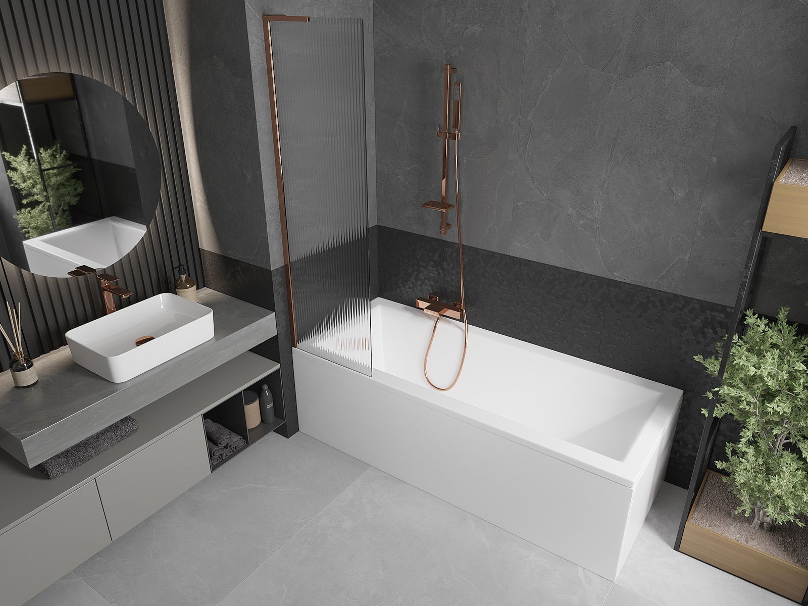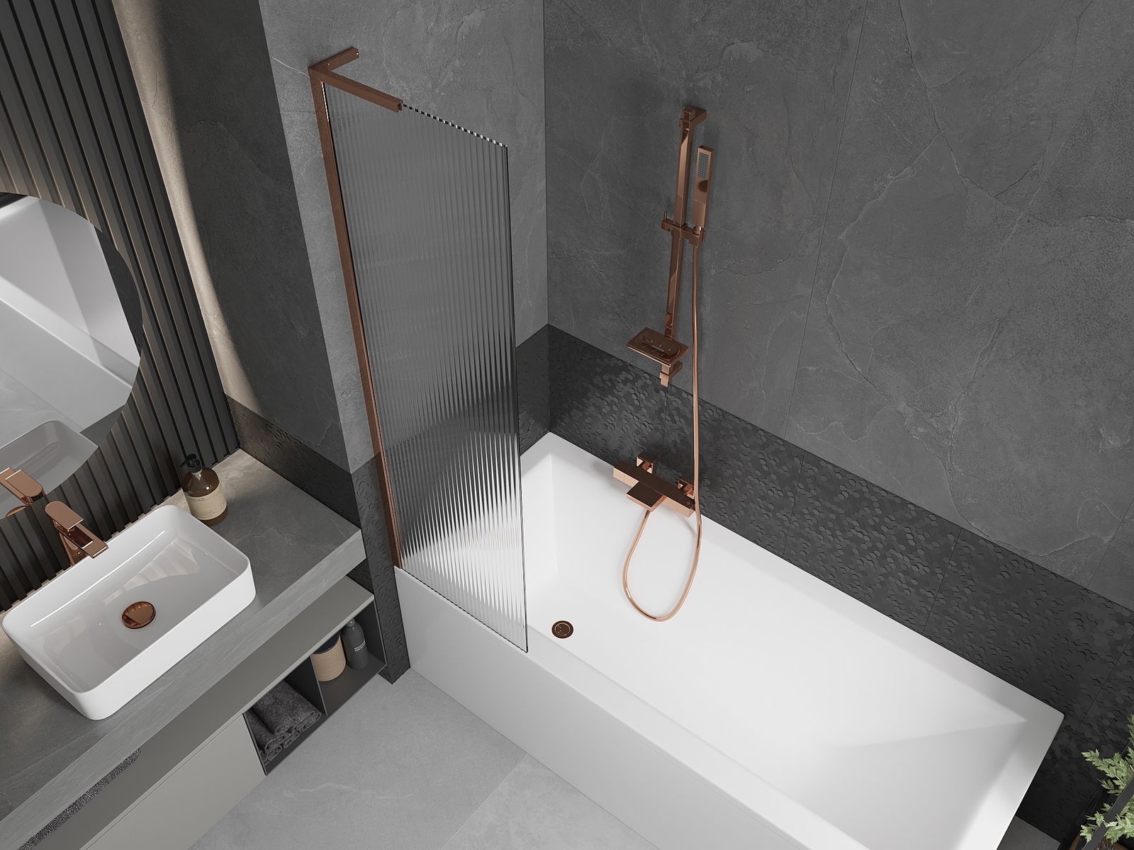 Mexen Next L преграда за вана 1-крило 50 x 150 см, райета, розово злато - 895-050-000-03-09-60