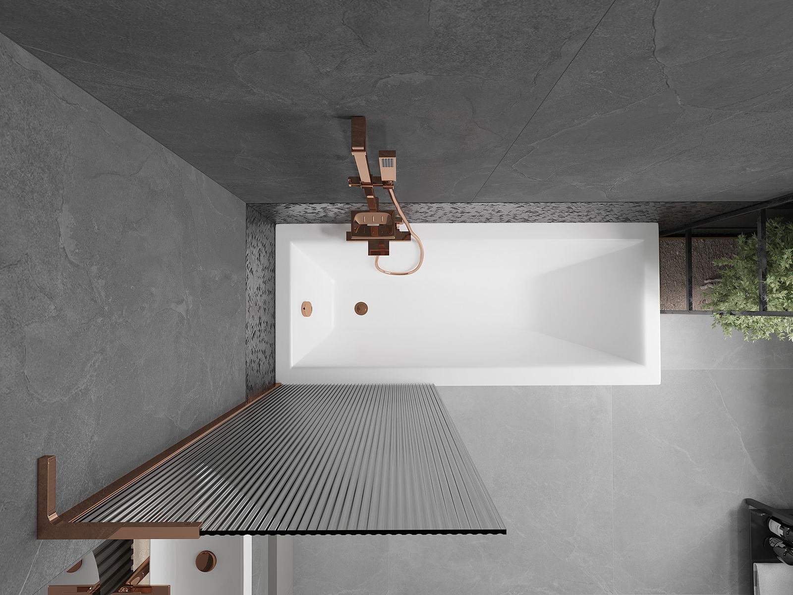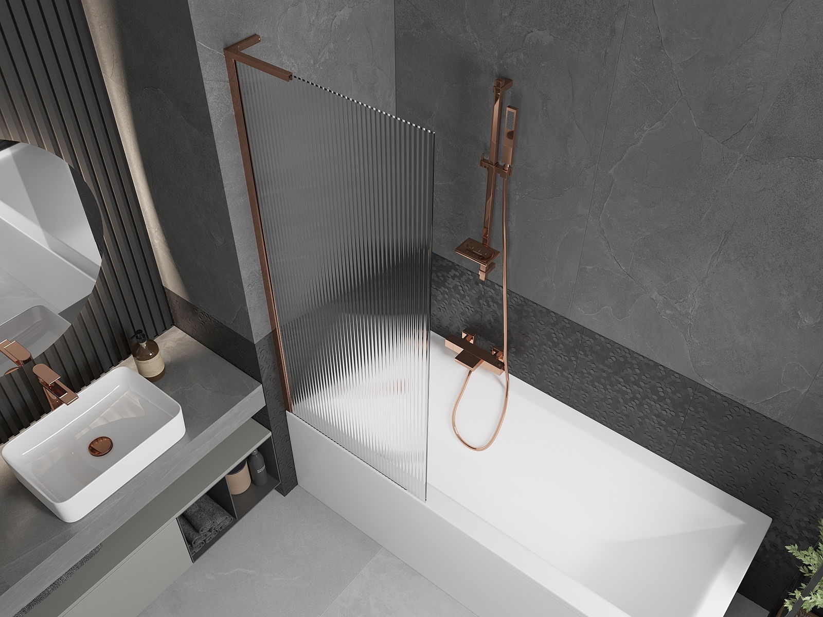 Mexen Next L параван за вана с едно крило 70 x 150 см, ивици, розово злато - 895-070-000-03-09-60