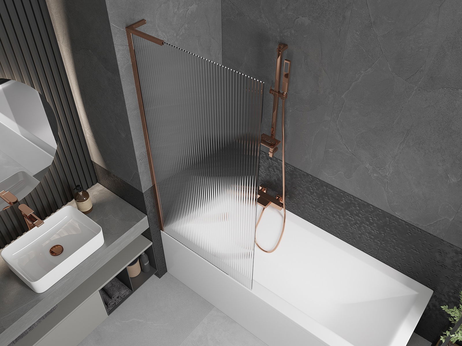 Mexen Next L параван за вана 1-крилен 80 x 150 см, райе, розово злато - 895-080-000-03-09-60