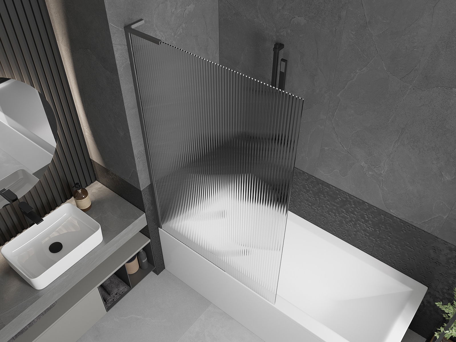 Mexen Next L параван на вана еднокрилен 100 x 150 cm, райета, модерно сиво матирано - 895-100-000-03-09-66