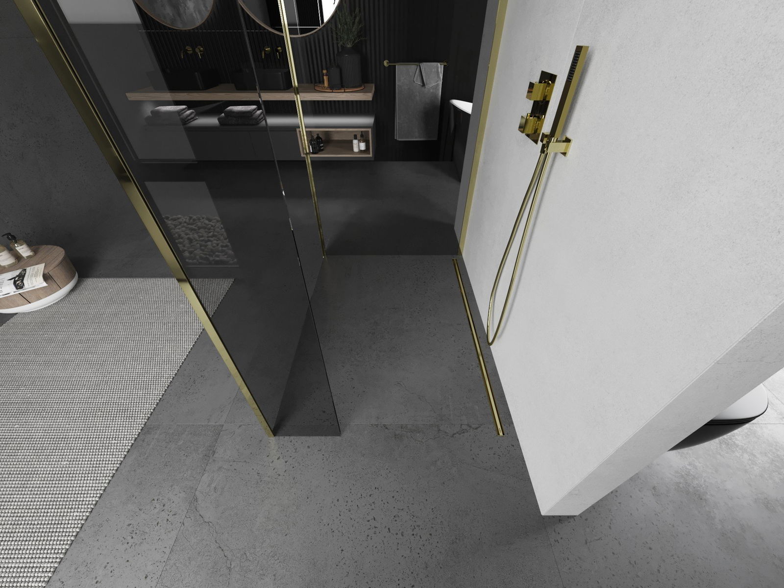 Mexen Kioto стъклена стена за душ, Walk-in 100 x 85 x 40 cm, прозрачна, златна - 800-100-085-221-50-00-040