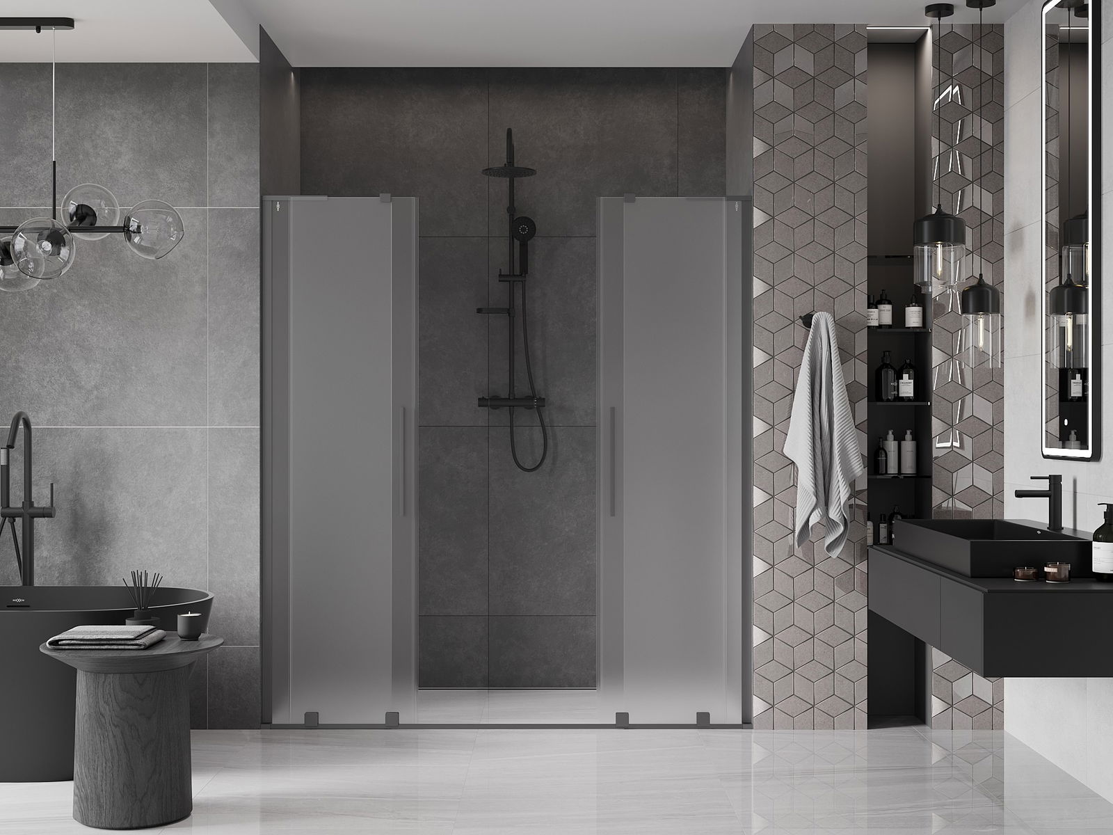 Mexen Velar L Duo плъзгащи се душ врати 200 см, матирано стъкло, gun metal - 871-200-003-32-95