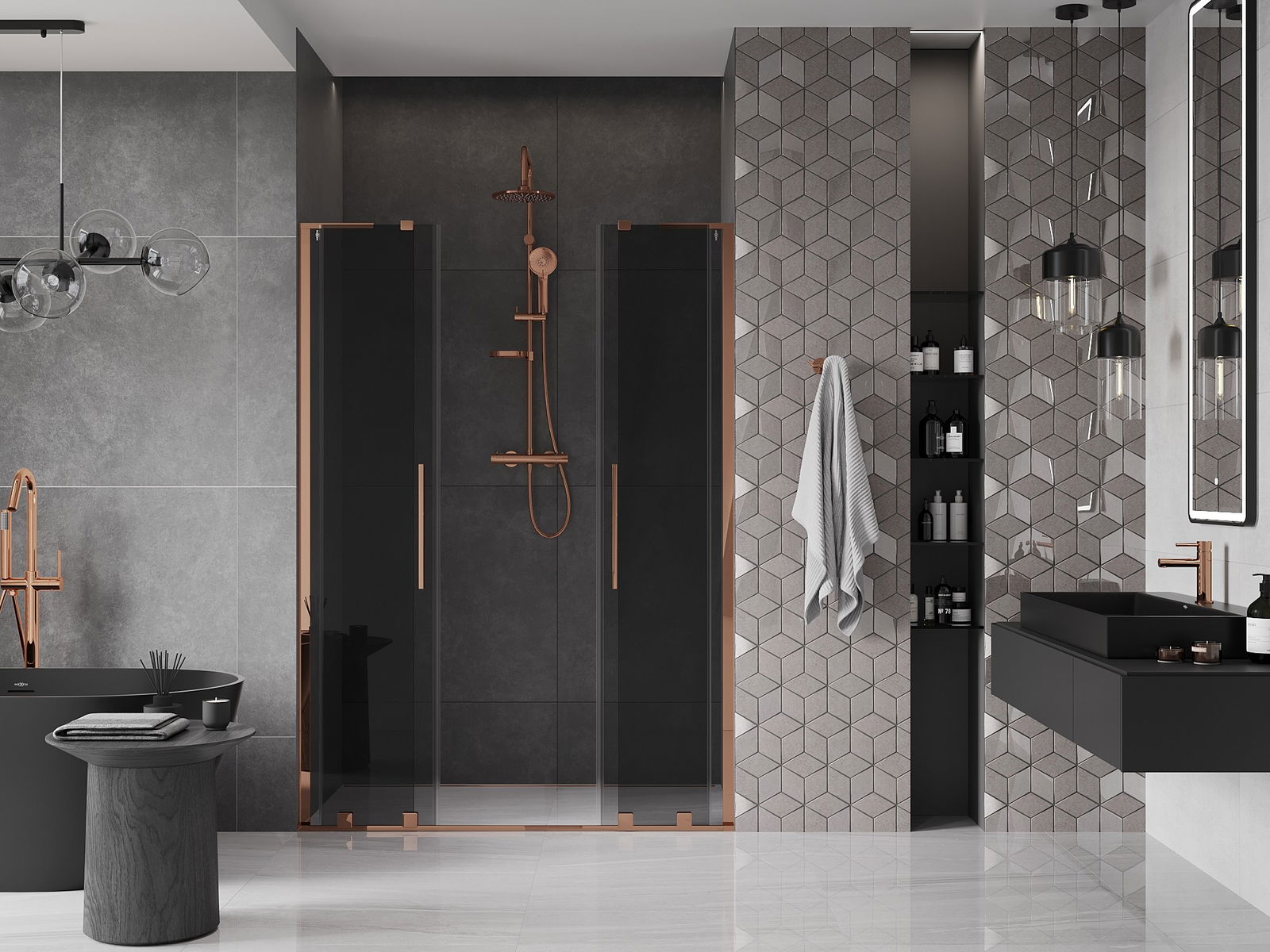 Mexen Velar L Duo плъзгащи се душ врати 160 см, графит, розово злато - 871-160-003-42-60