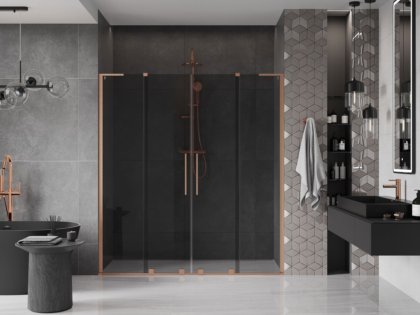 Mexen Velar L Duo плъзгащи душ врати 170 см, графит, четкана мед - 871-170-003-42-65