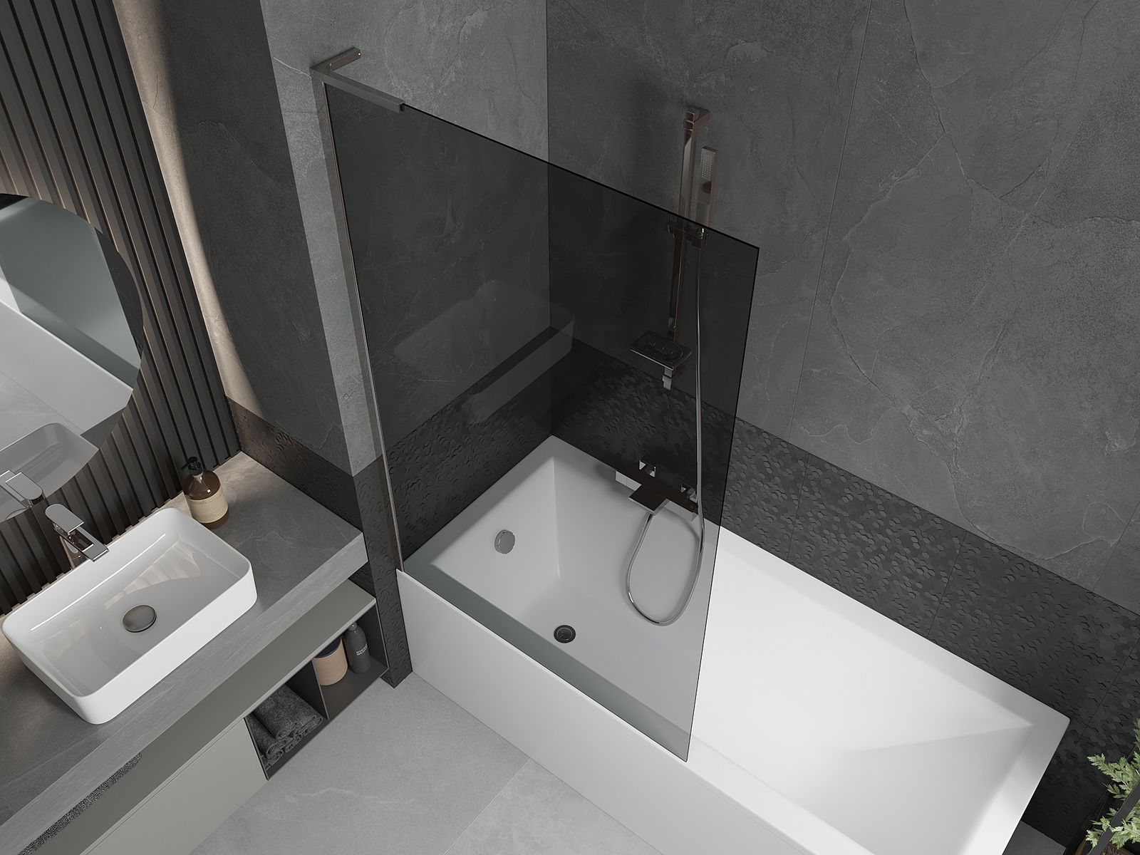 Mexen Next L душ параван за вана с 1 крило 100 x 150 см, графит, хром - 895-100-000-03-40-01