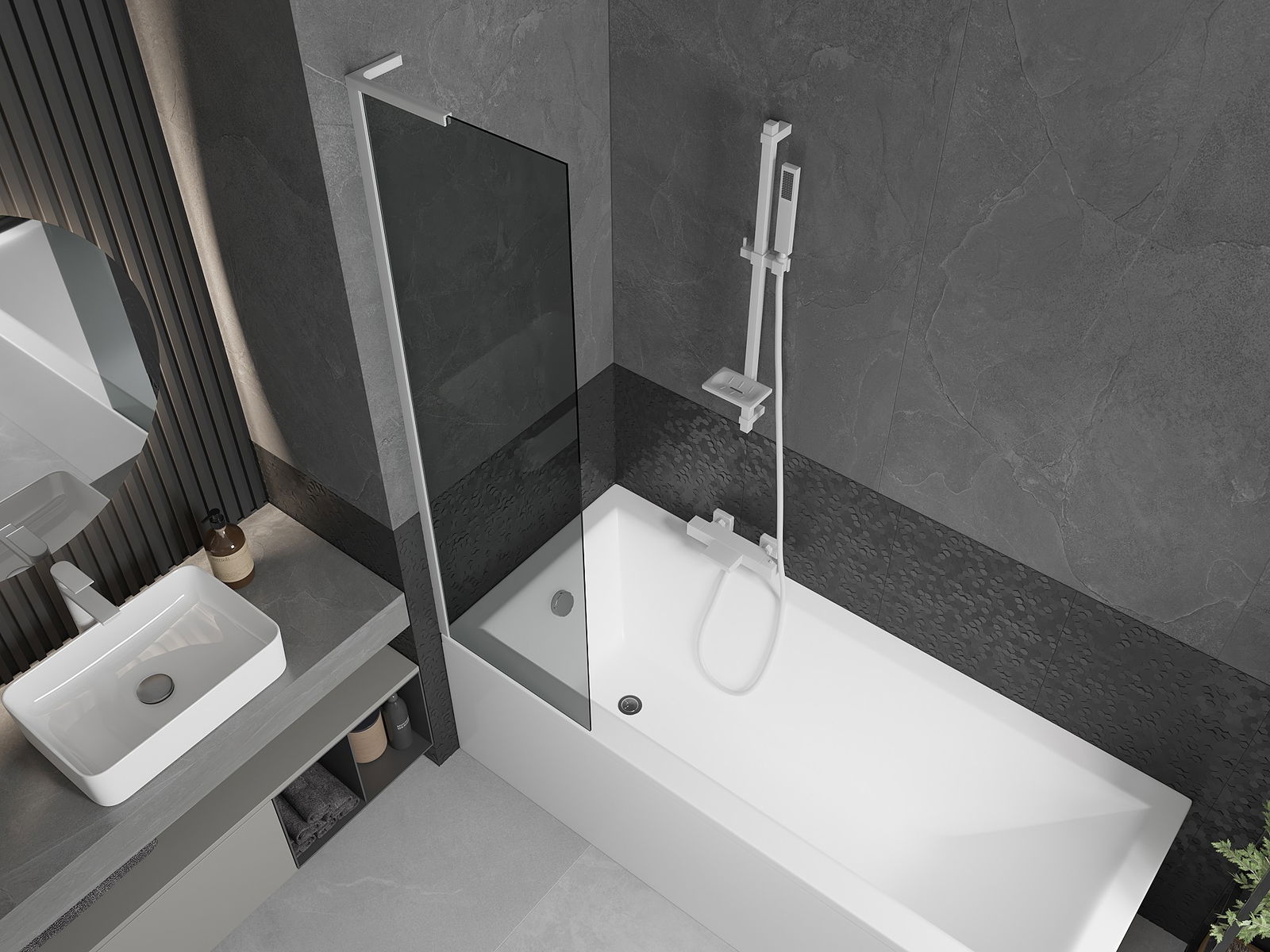 Mexen Next L параван за вана с 1 крило 50 x 150 см, графит, бял - 895-050-000-03-40-20