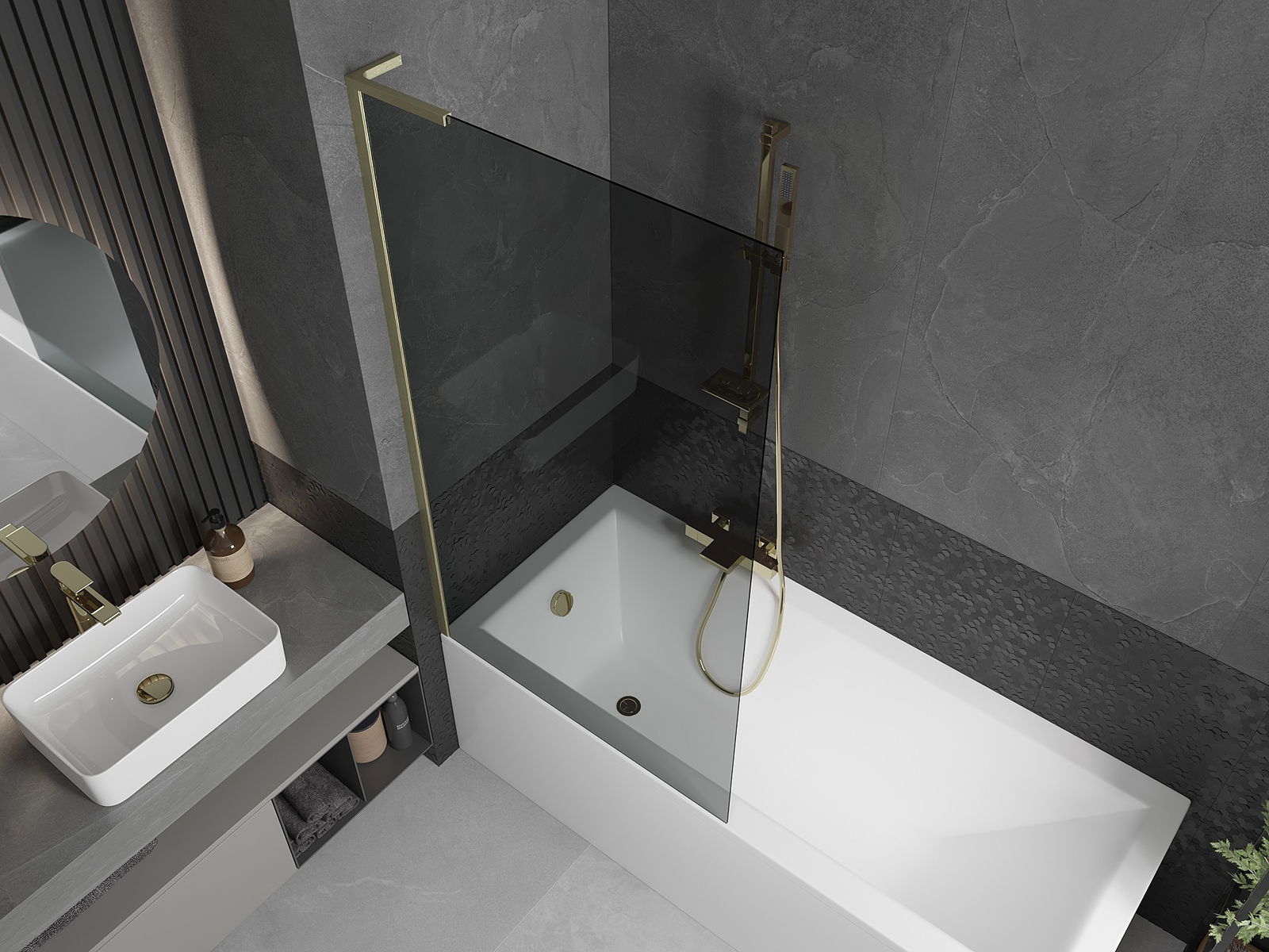 Mexen Next L параван за вана с 1 крило 90 x 150 см, графит, злато четкано - 895-090-000-03-40-55