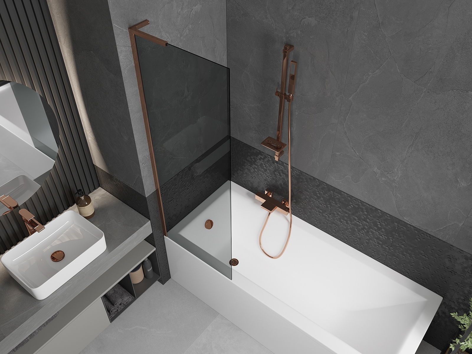 Mexen Next L параван за вана 1-крилен 60 x 150 см, графит, розово злато - 895-060-000-03-40-60