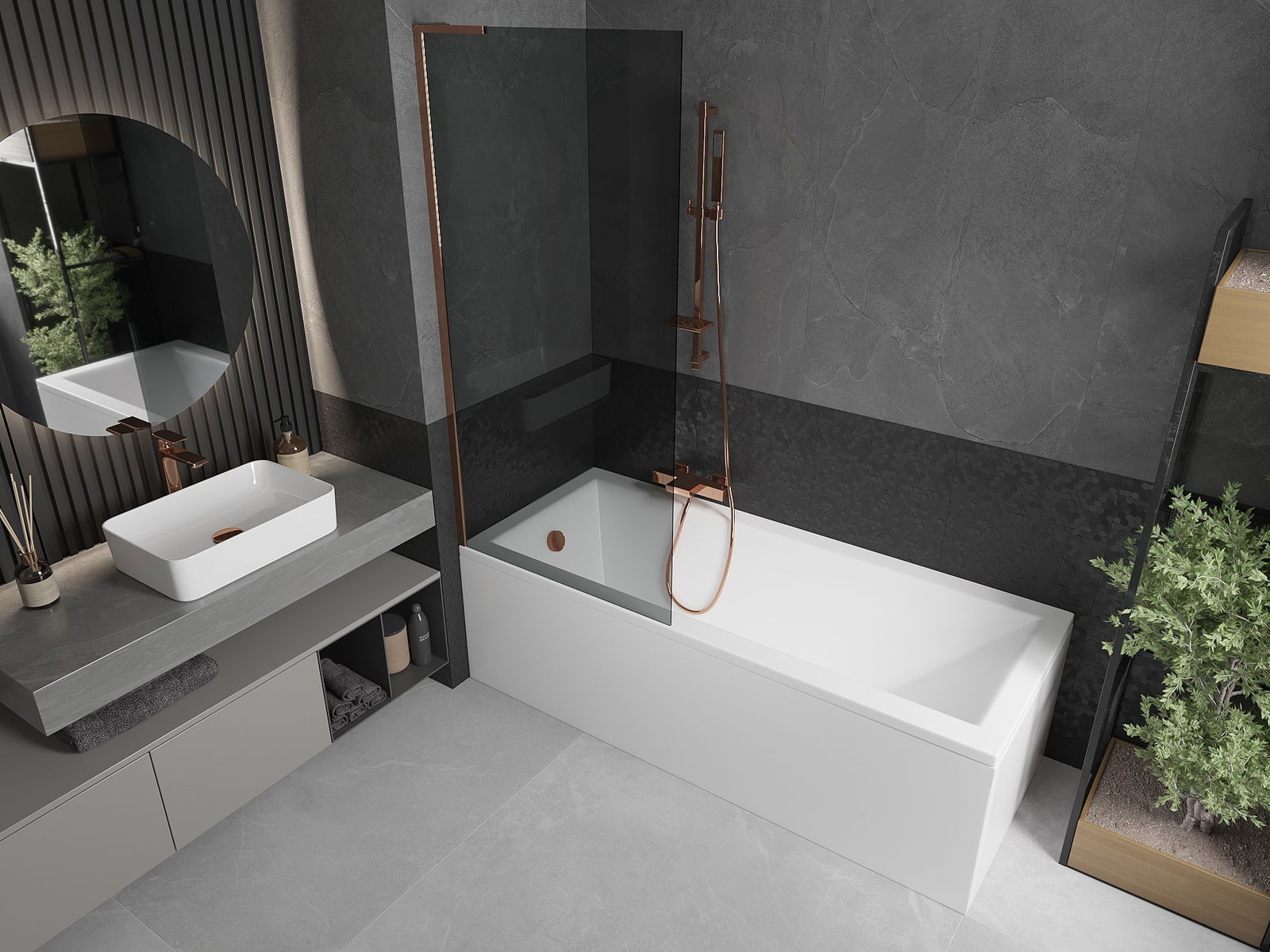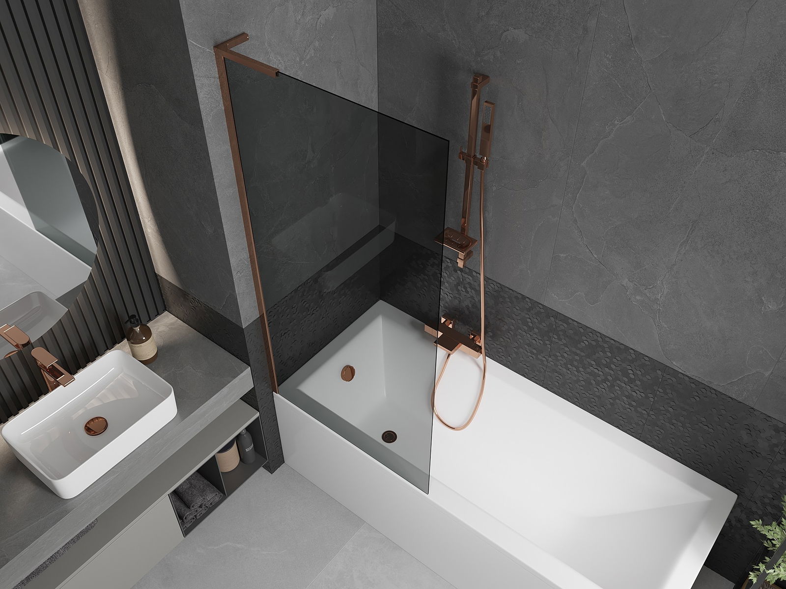 Mexen Next L параван за вана с 1 крило 80 x 150 см, графит, розово злато - 895-080-000-03-40-60