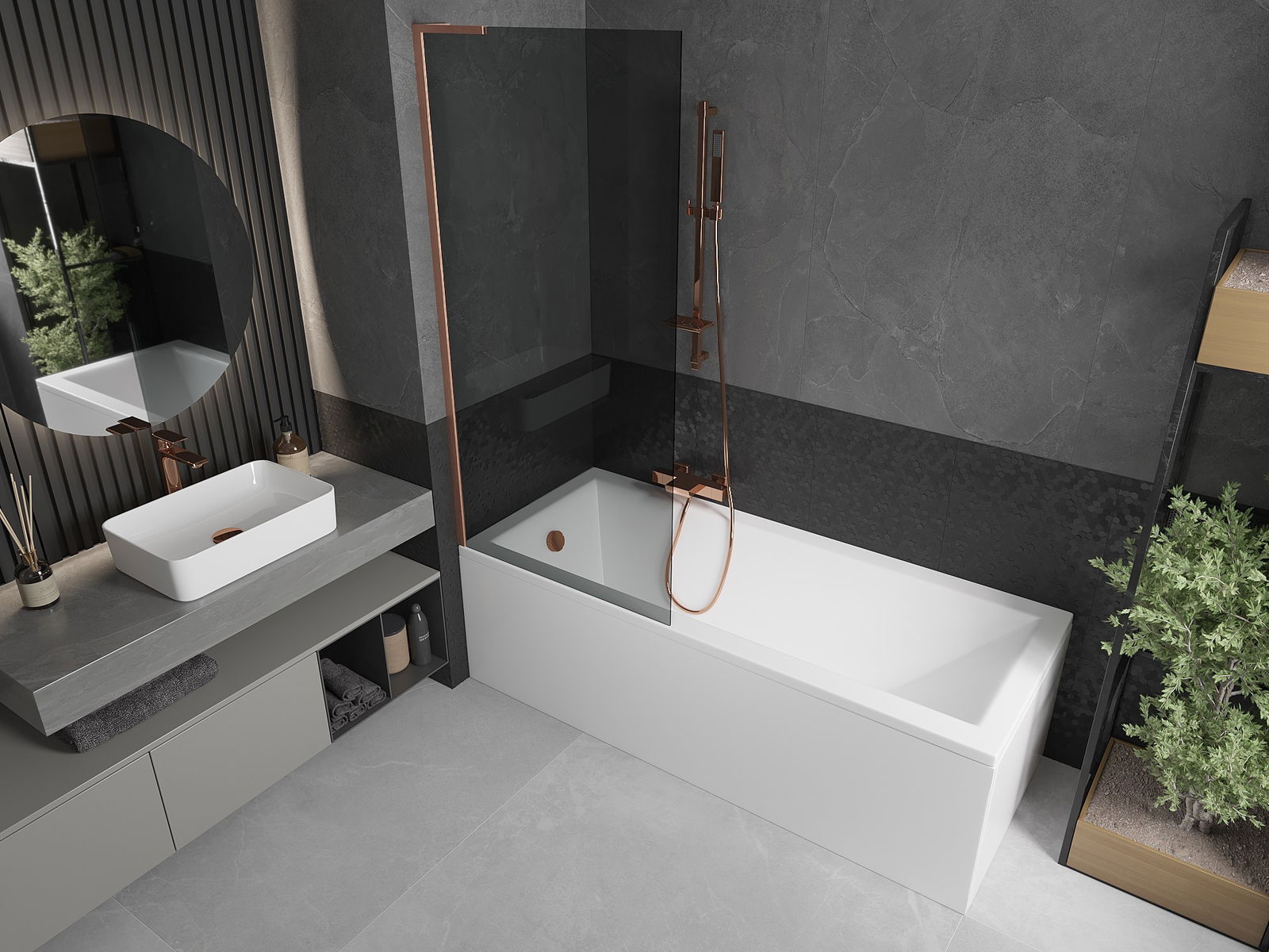 Mexen Next L панел за вана 1-крилен 80 x 150 см, графит, четкана мед - 895-080-000-03-40-65