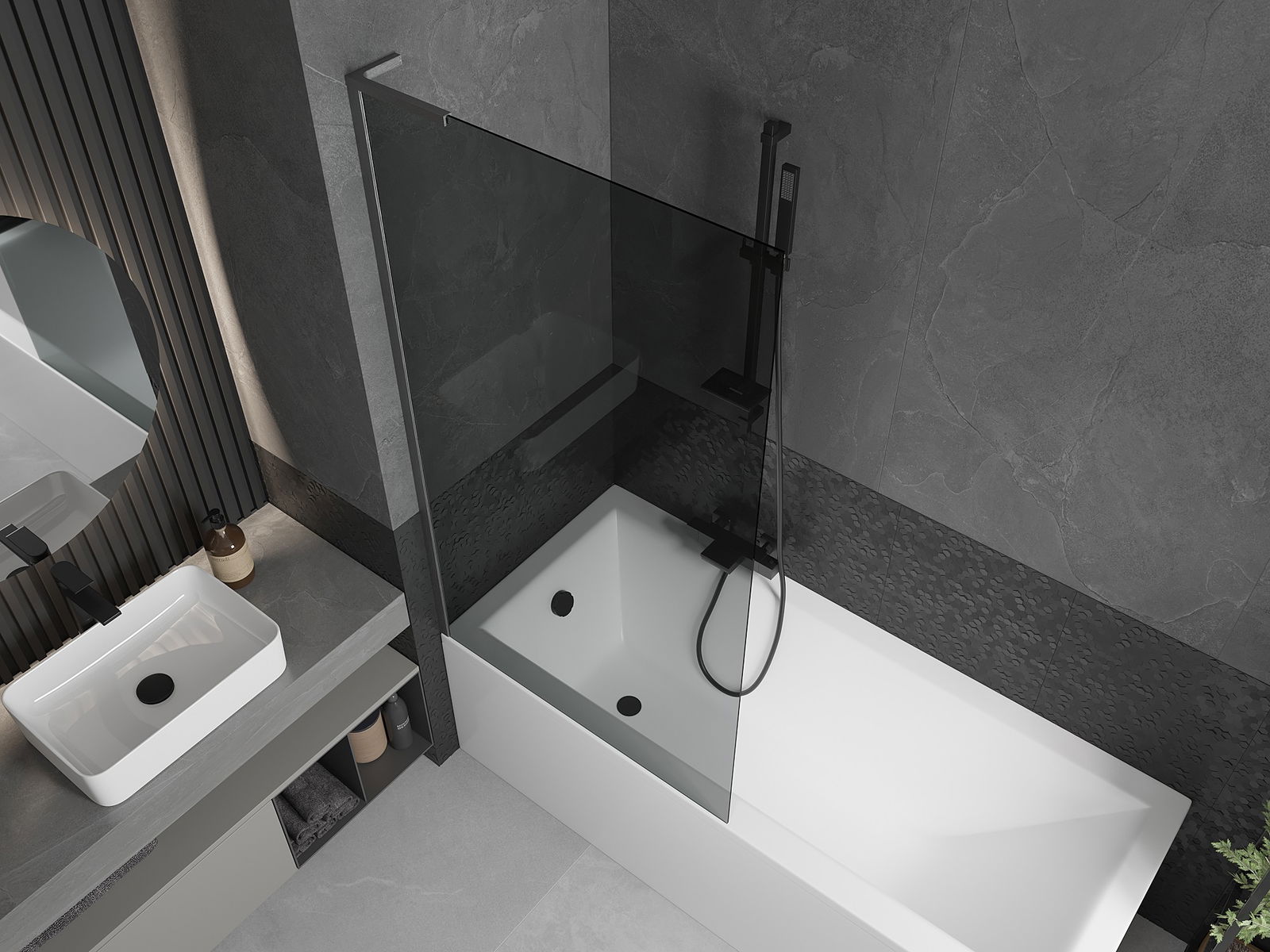 Mexen Next L преграда за вана 1-крила 90 x 150 см, графит, четка сяра - 895-090-000-03-40-66