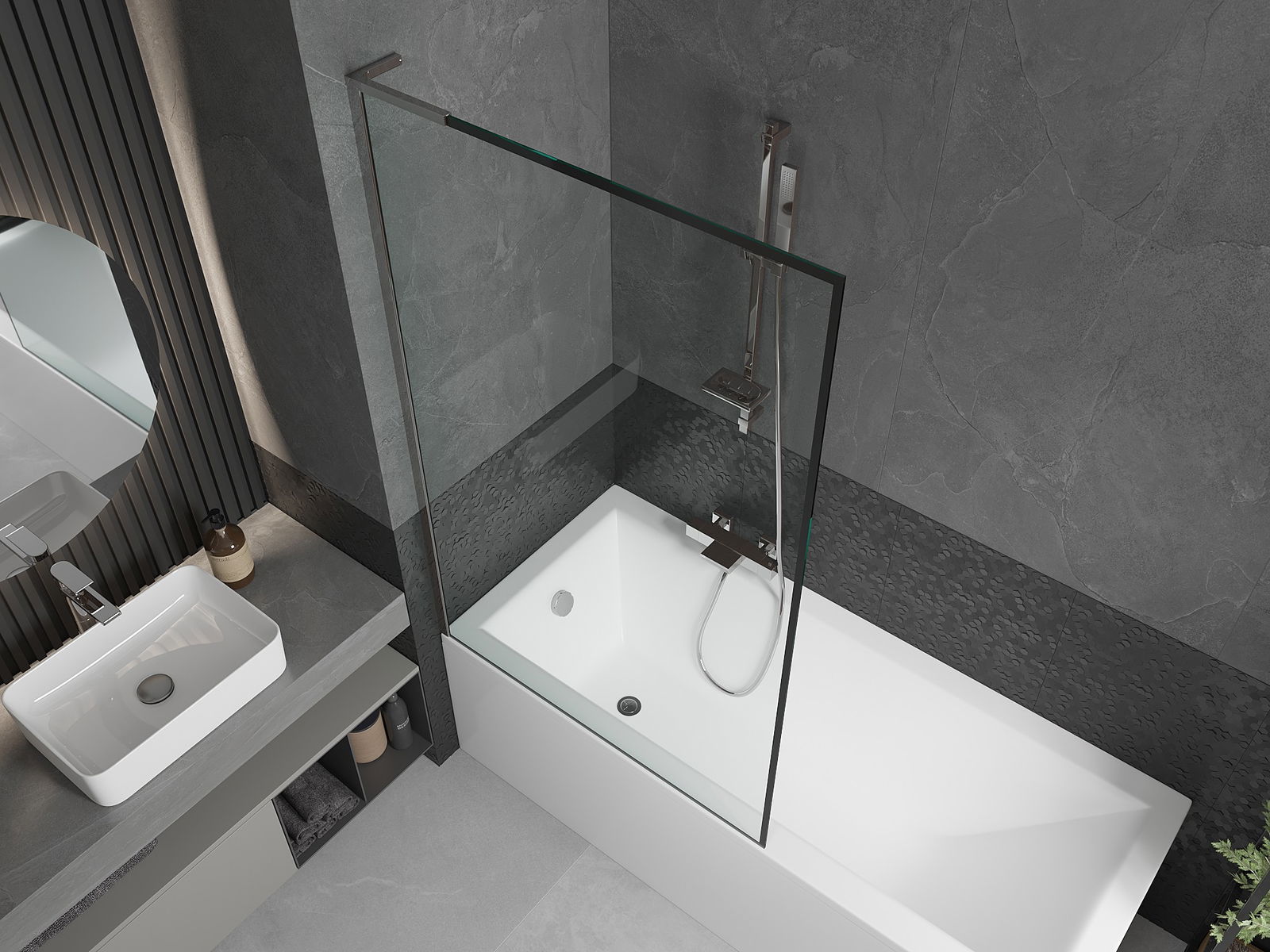Mexen Next L параван за вана, еднокрил 100 x 150 см, черна рамка, хром - 895-100-000-03-70-01