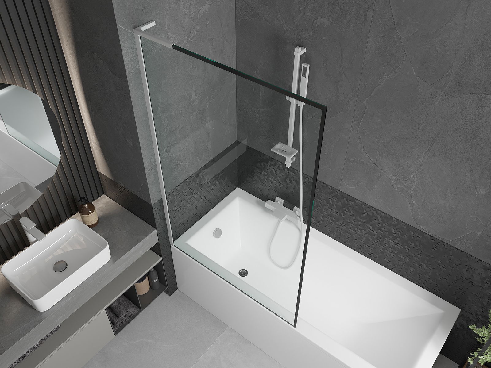 Ефективна защита срещу разливане на вода по време на къпане. Екранът има уплътнения, които перфектно се адаптират към чашата на стъклото и ръба на ваната. Функционално решение, гарантиращо безопасността и лесната поддръжка.