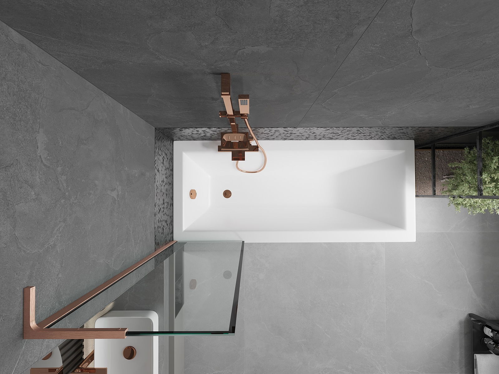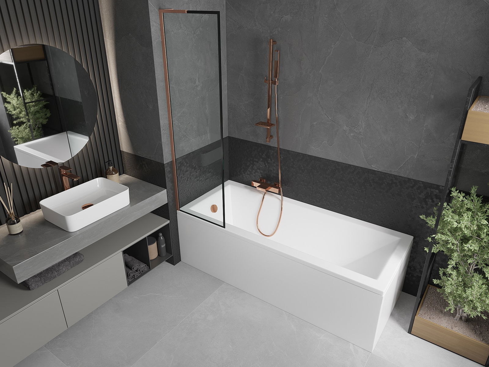 Mexen Next L преграда за вана, еднокрилен 50 x 150 см, черна рамка, матирана мед - 895-050-000-03-70-65