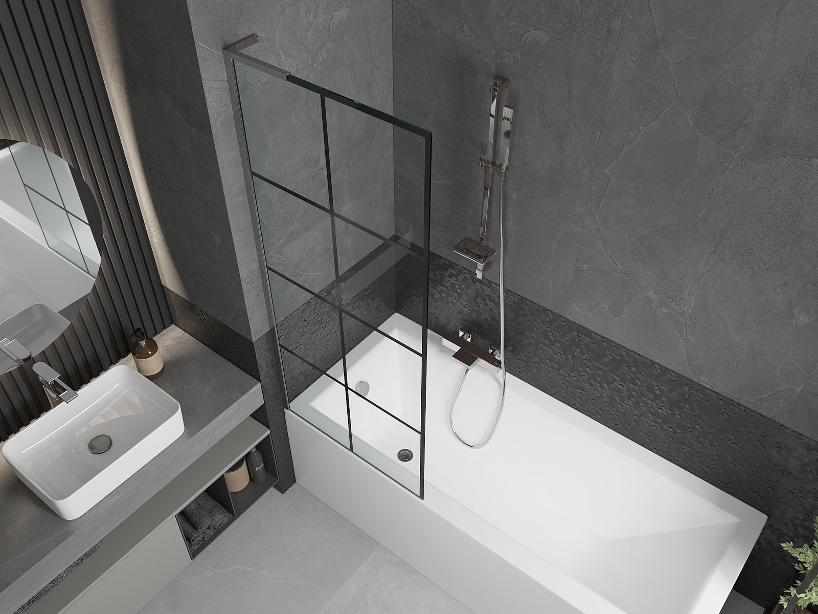 Mexen Next L параван за вана 1-крилен 70 x 150 см, черна решетка, хром - 895-070-000-03-77-01